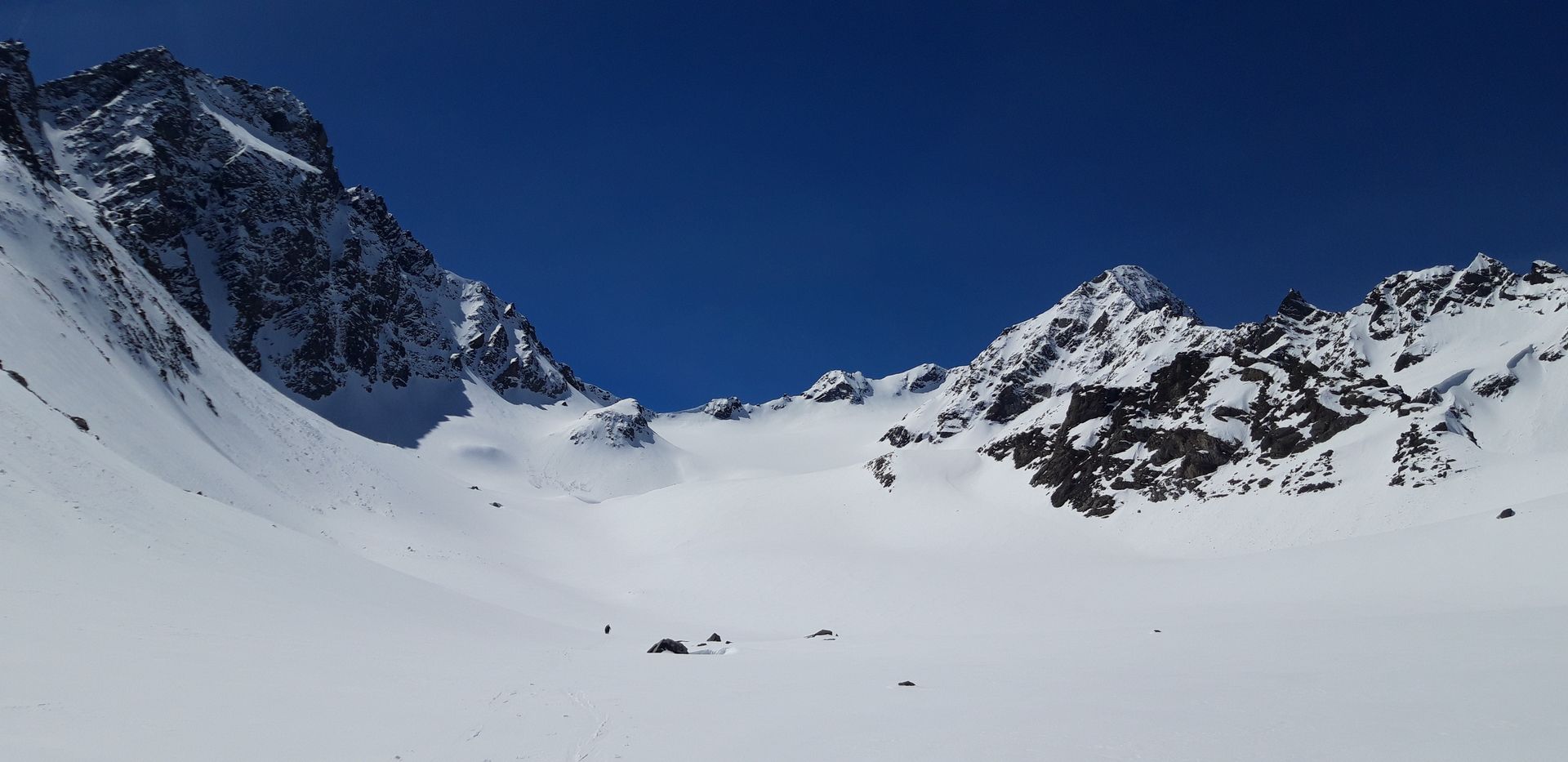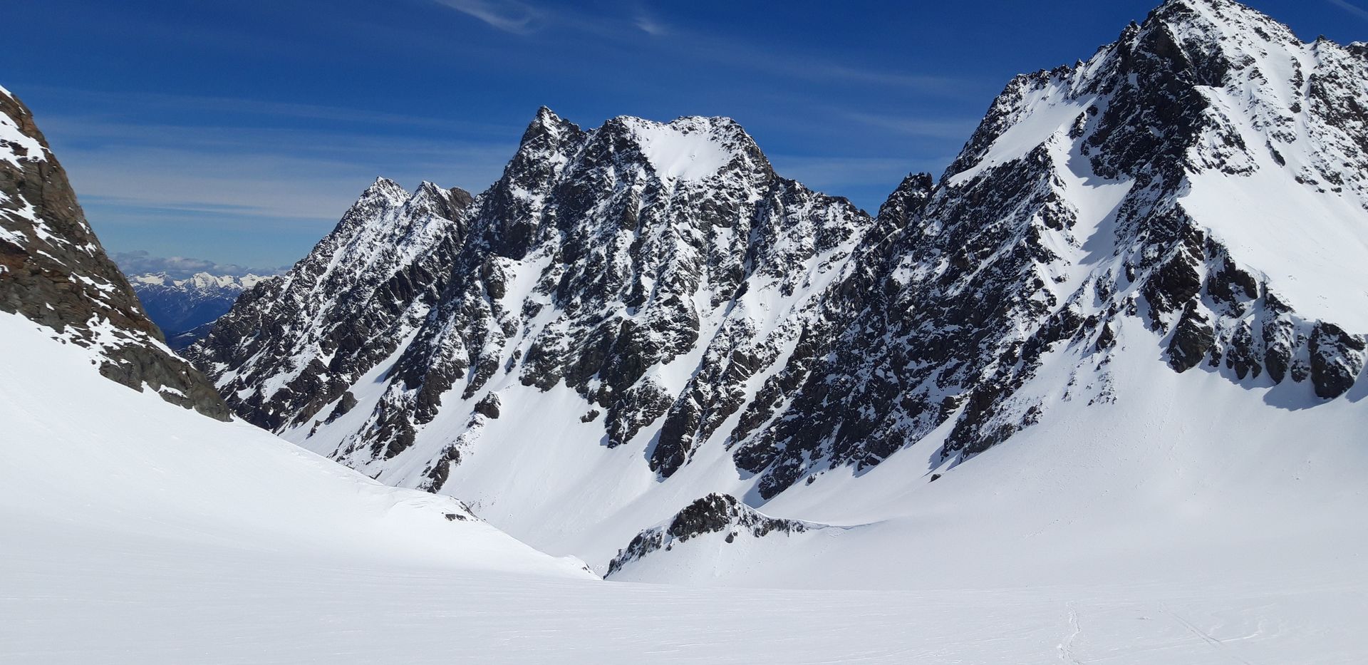 Durch den flachen Talboden und über die erste Geländekante habe ich getragen (etwa 35 Minuten); danach ging es durchgehend mit den Skiern an den Füßen. Bis etwa auf Höhe des Westfalenhauses geht es meist über alten und neuen Lawinenschnee, was aber weder im Aufstieg noch in der Abfahrt ein Problem ist. Ansonsten sind die Bedingungen absolut hervorragend! Oben schwerer, aber schön zu fahrender Pulver, der nahtlos in perfekten Firn überging - sicher der beste Firn den ich heuer hatte. Ich muss aber zugeben, dass ich eigentlich viel zu spät dran war (Start um kurz vor 9, Abfahrt um 13 Uhr) und nur die glückliche Fügung eines starken, kühlen Windes im Längental mir die perfekten Bedingungen verschafft hat, da sich so das Auffirnen verzögerte.