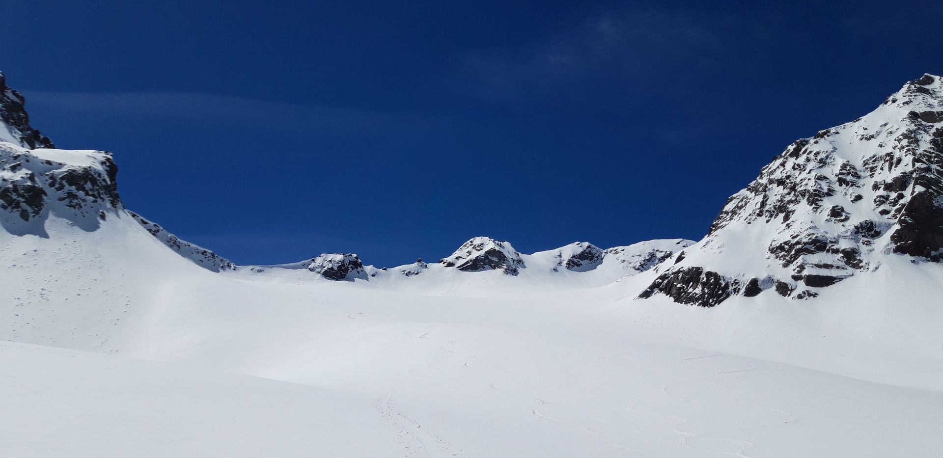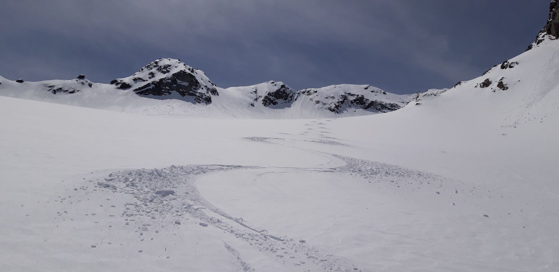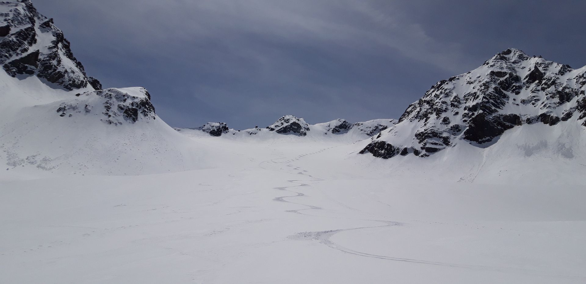 Lawinenlage: Wie schon angesprochen sind die Spuren alter und neuerer Lawinen am Wegesrand deutlich zu sehen. Der Weißenkogel ist bei umsichtiger Spuranlage aber normalerweise recht sicher. Auf die Aufstiegsspur Richtung Lüsener Ferner ist im Tagesverlauf eine mittelgroße Nassschneelawine abgegangen (genau bei der "Schlüsselstelle" - siehe Foto hierzu).