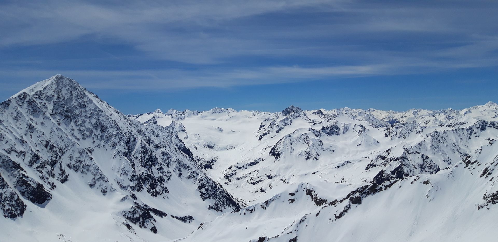 6: Do herom is no lang Winter! Das Bild zeigt hauptsächlich den Tourenbereich der Amberger Hütte; links der Schrankogel.