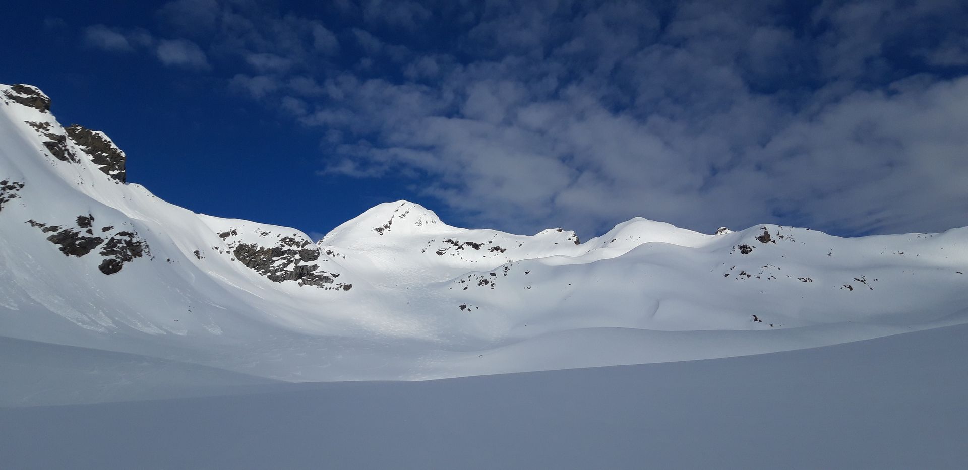 Erstaunlich fand ich, dass fast alle über die von gestern her recht zerhackte Standardabfahrt runter sind, obwohl es im oberen Teil viele schöne Varianten gibt. Im Gampemtal war es fein einsam.