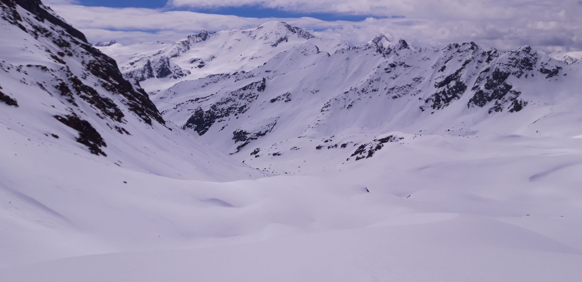 Erstaunlich fand ich, dass fast alle über die von gestern her recht zerhackte Standardabfahrt runter sind, obwohl es im oberen Teil viele schöne Varianten gibt. Im Gampemtal war es fein einsam.