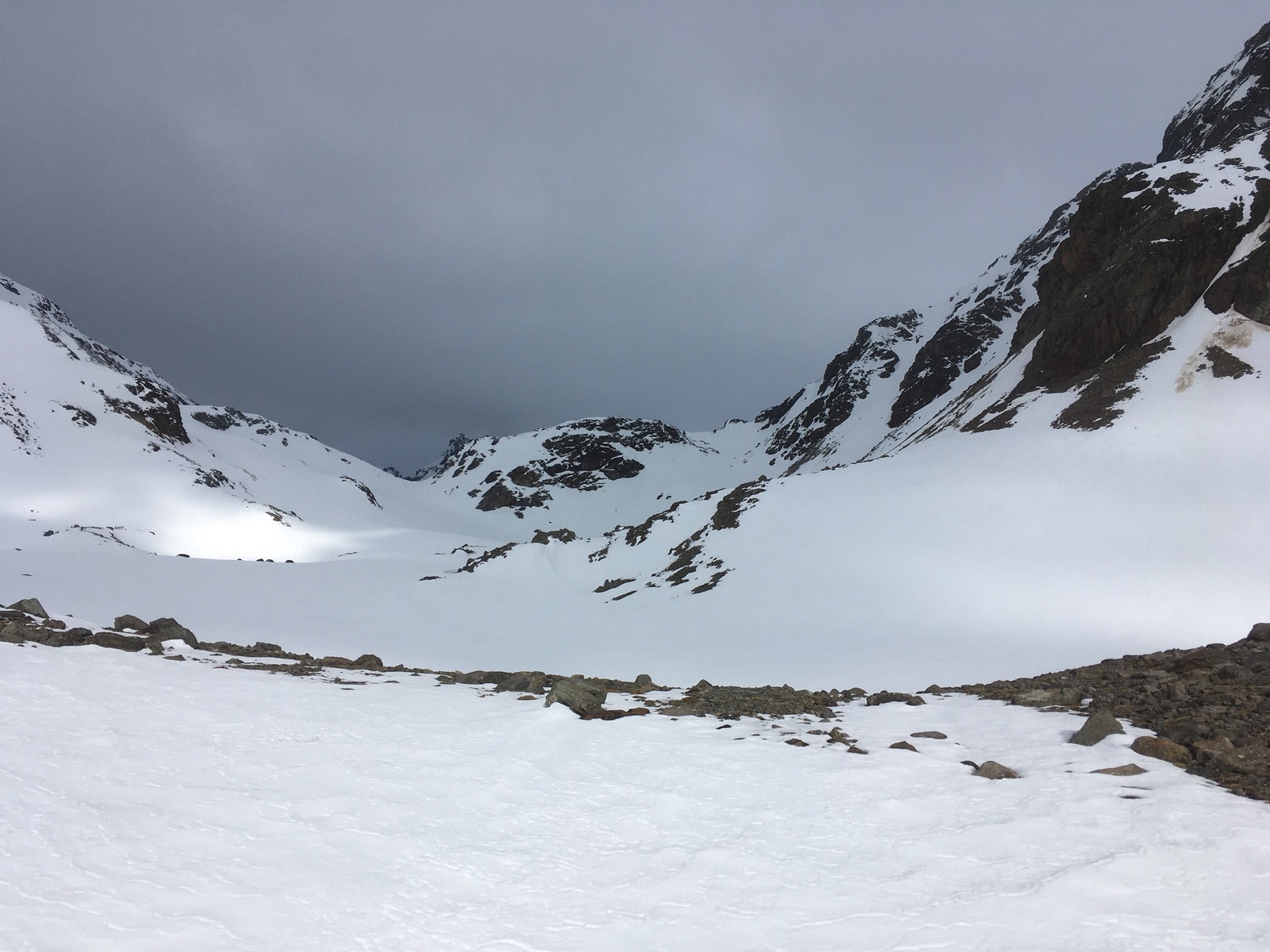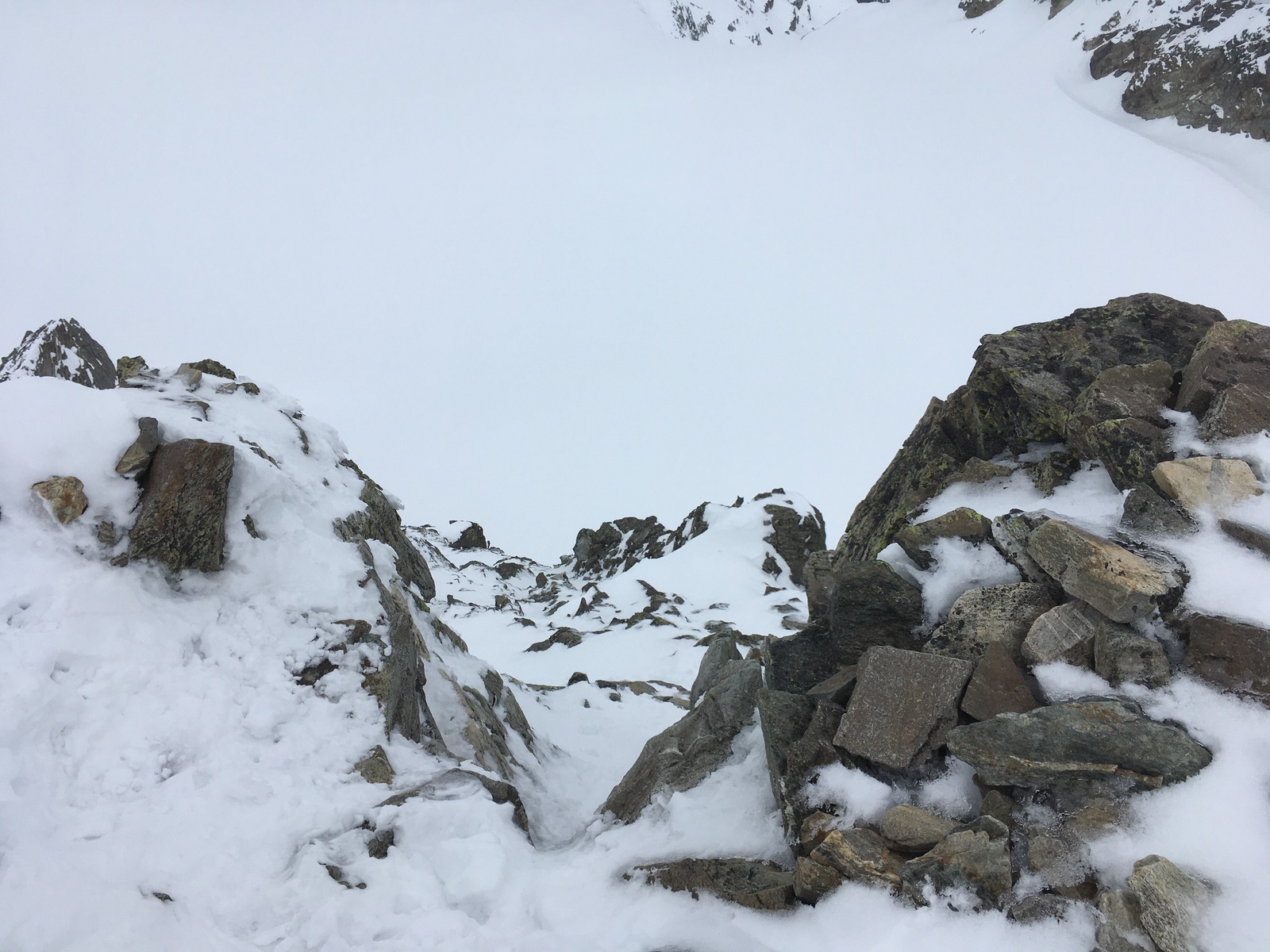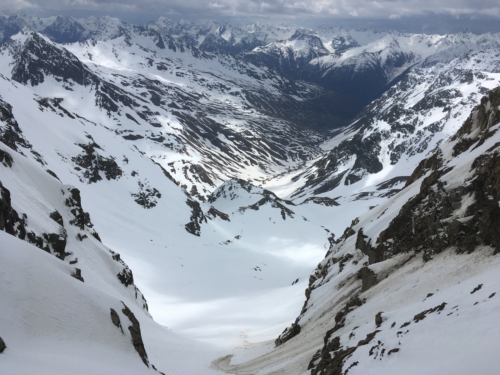 Blick von der Buin-Lücke auf die weitere Abfahrt: