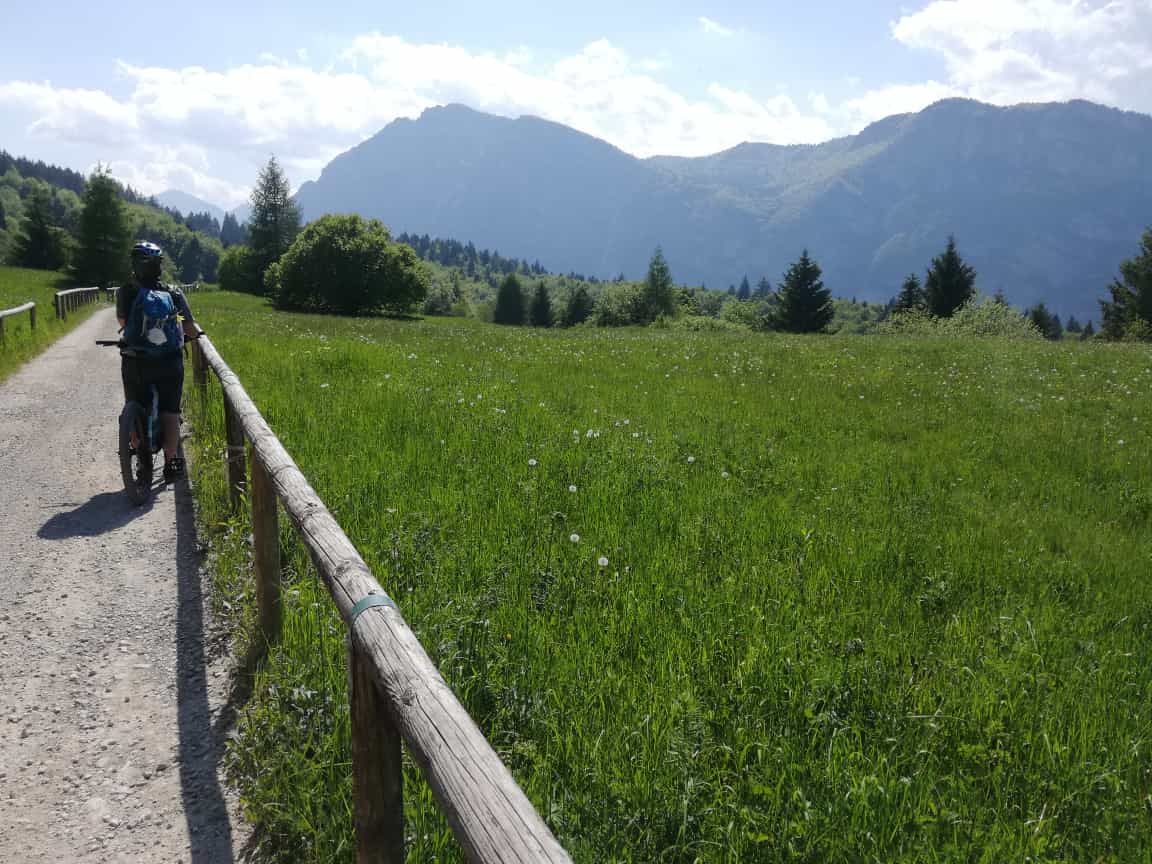 Von Arco nach Varignano und knapp 11km und 950Hm auf Teerstraße mit wenig, aber eben doch Autoverkehr nach San Giovanni al Monte, wo man sich gut stärken kann. Dann ein Stück in leichtem Auf und Ab auf Forststraßen durch Wald, ehe es bergab geht, manchmal über Almwiesen, meist durch Wald. Von ca. Calino bis zum Ortsende von Tenno Teerstraße, anschließend über meist befestigte Sträßchen und Wege direkt nach Varignano und Arco zurück. Bis San Giovanni öfters schöne Ausblicke ins Sarcatal, danach landschaftlich sehr schön. Wenig los, vorallem zwischen San Giovanni und Tenno.