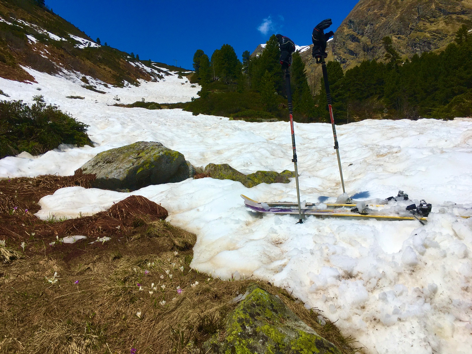 Wie es sich für eine Frühsommer-Skitour gehört, wurden alle Schneereste ausgenutzt: