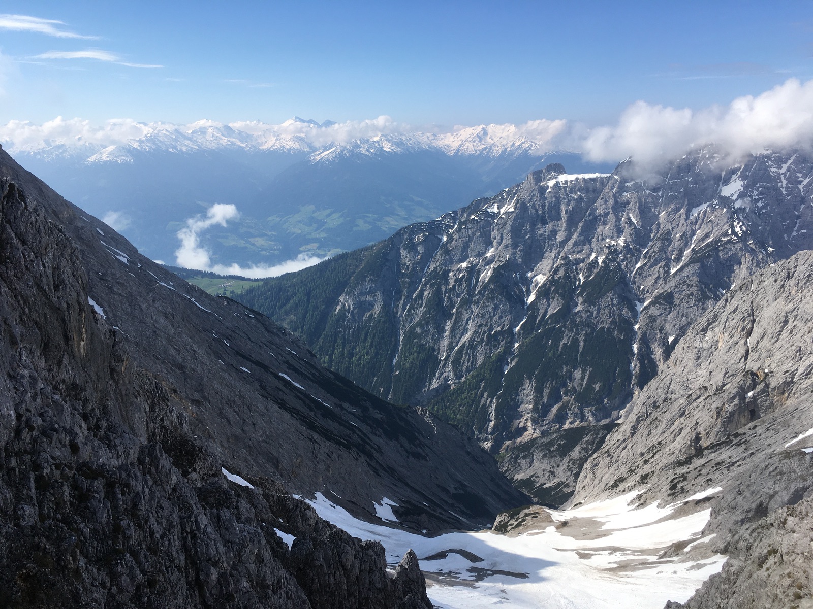 Blick aus der Östlichen Hochglückscharte hinüber in die Tuxer Alpen und zum Olperer: