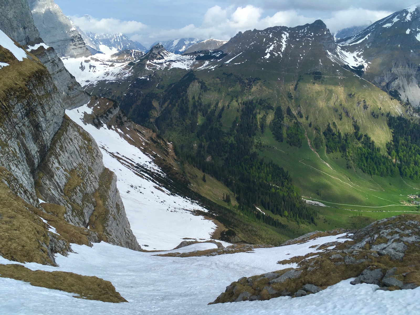 Blick zurück - oben der Schnee noch recht weicht, aber auch fahrbar: