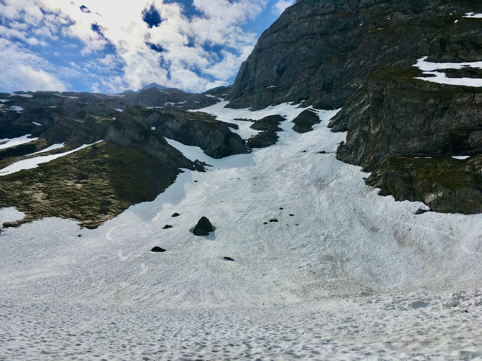 Wetter am Morgen sonnig, am Vormittag zog es langsam zu. Ziemlich warm. Aufstieg 6 Uhr, Abfahrt kurz vor 9.30 Uhr. Bei der Rückkehr ins Tal am Vormittag dann der übliche Eng-Touri-Andrang.