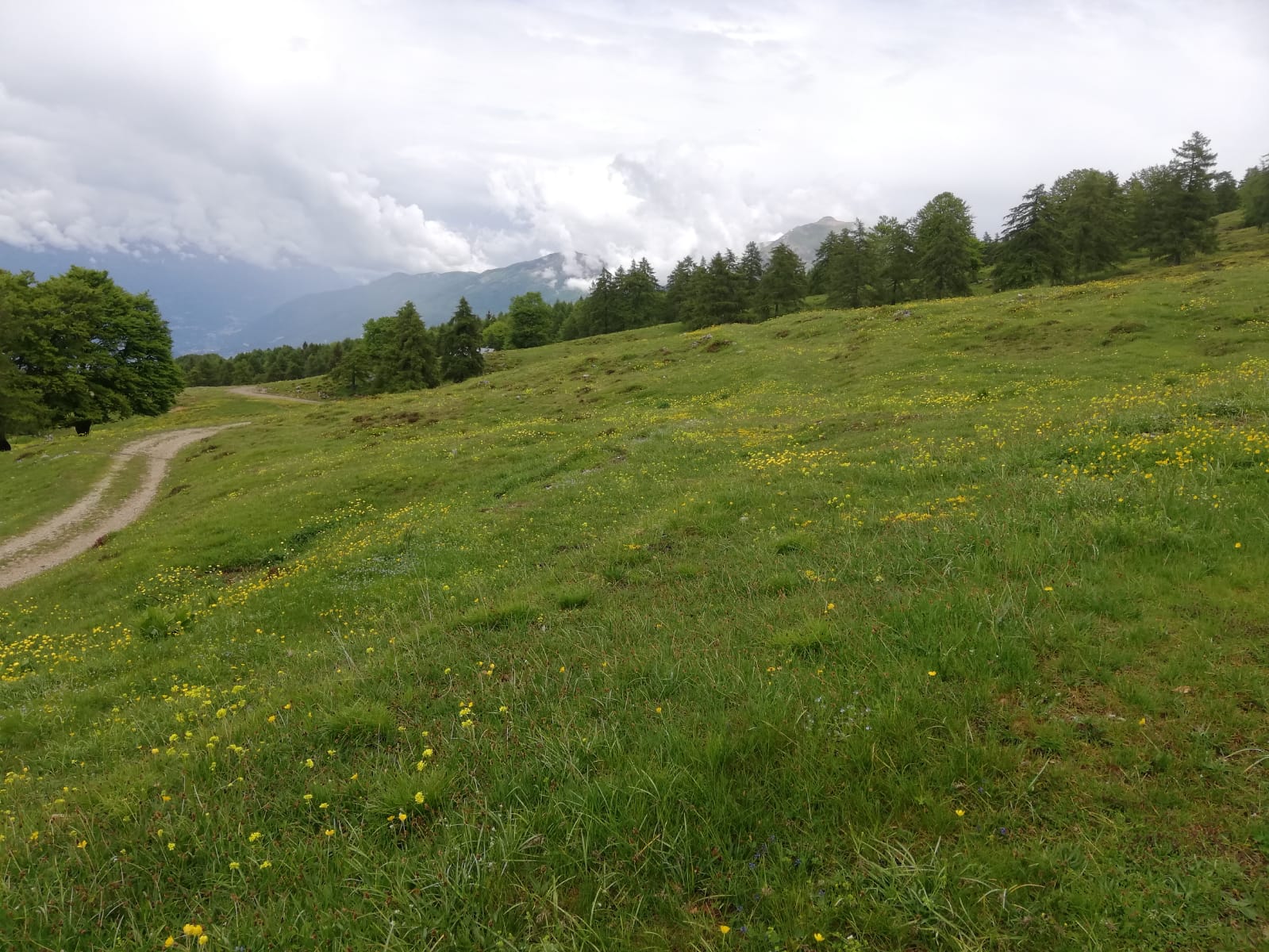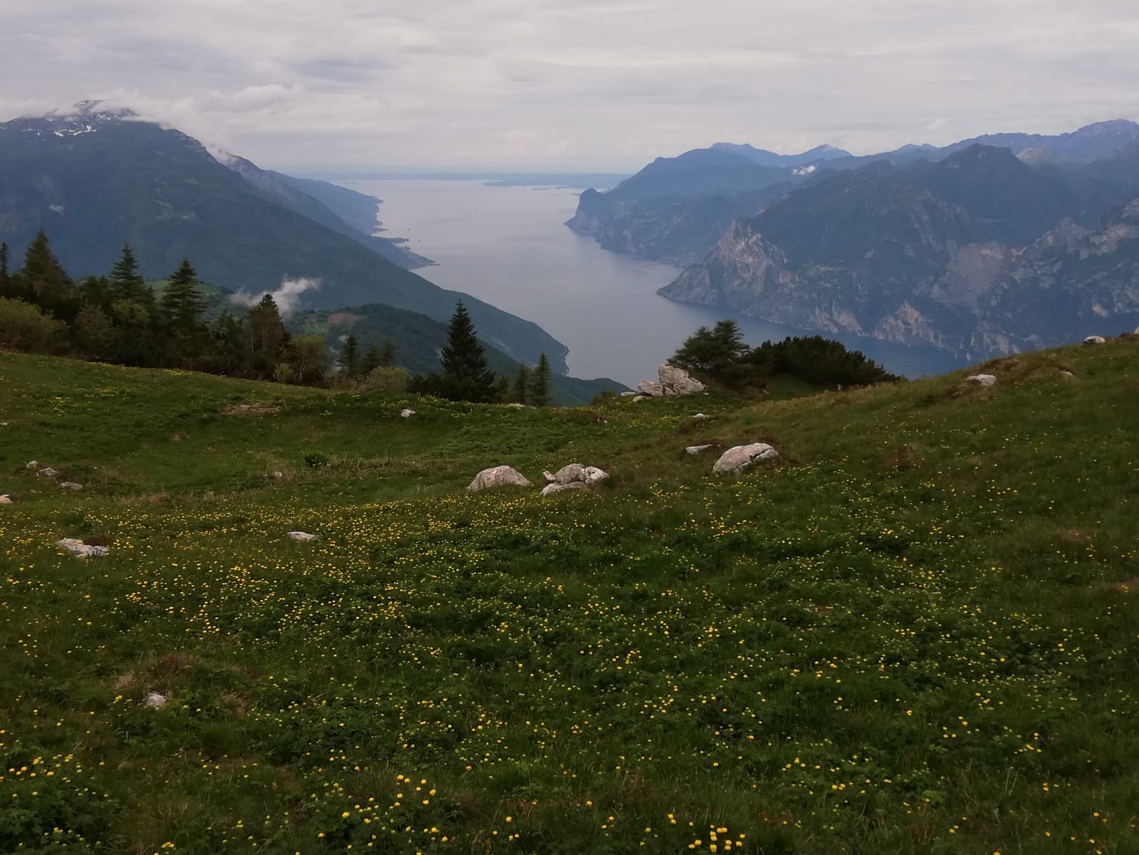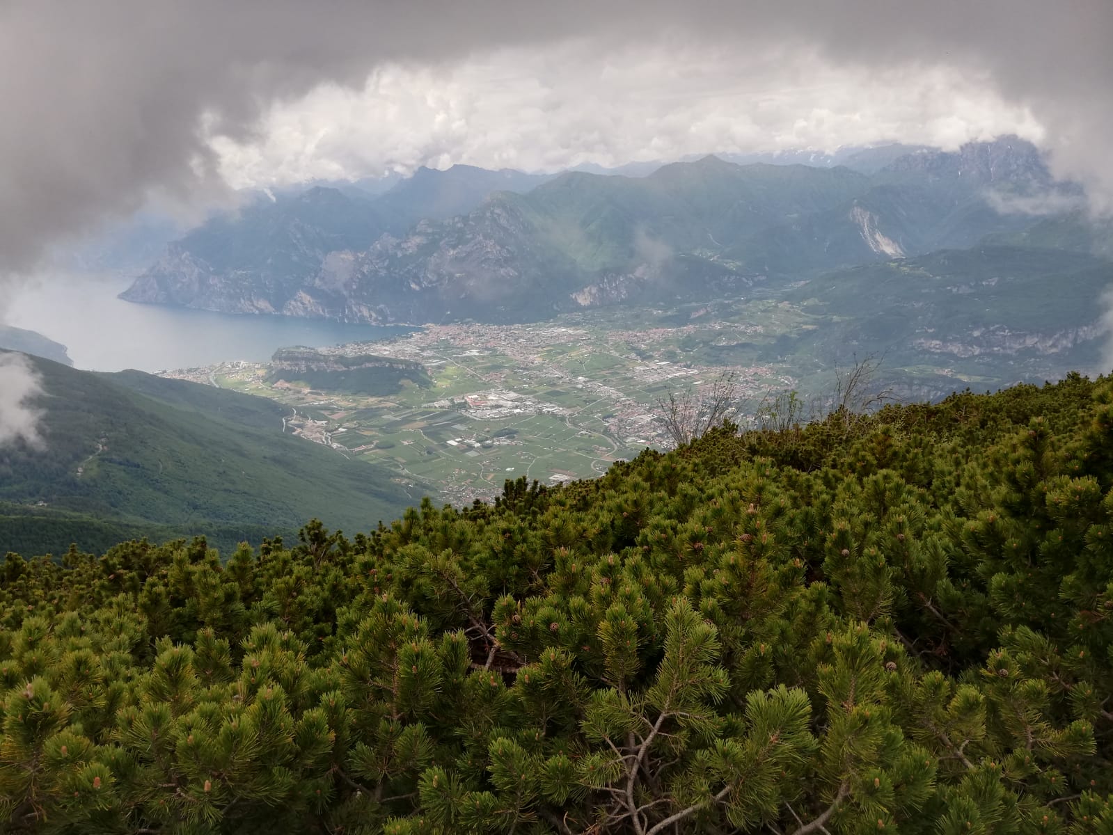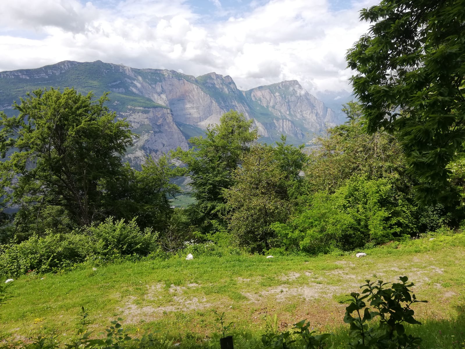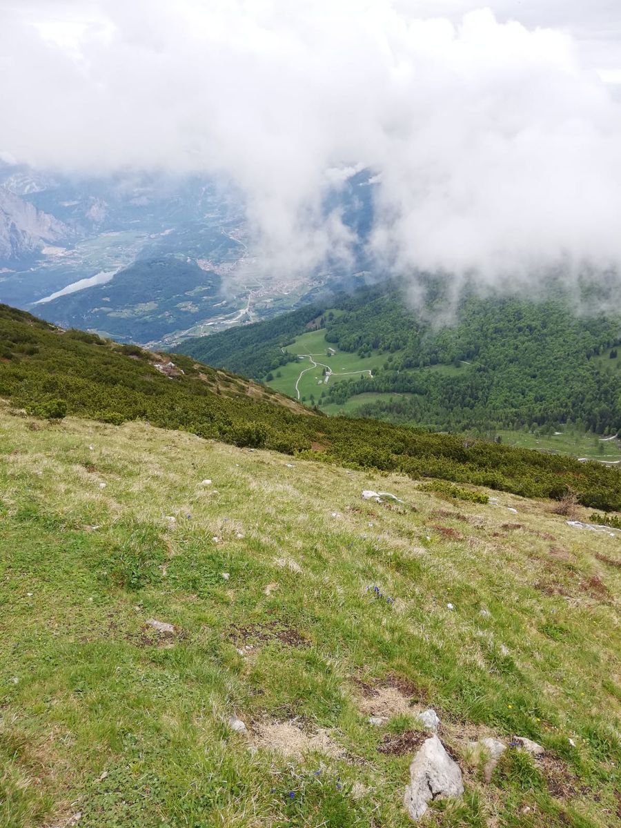 Der Monte Stivo ab Arco ist eine lange Tour. Deshalb habe ich zum warm werden den Radweg im Sarcatal gewählt, um über Ceniga und Dro erstmal nach Drena zu kommen. Dabei fährt man zeitweise auch auf Autostraßen mit Verkehr. Es gäbe aber ruhigere und schönere Alternativen, zB durch die Obstplantagen östlich der Hauptstraße im Sarcatal oder -mit zusätzlichen Höhenmetern, aber landschaftlich um einiges schöner - von Arco nach San Martino und über Pianaura und Braila. Ab der Burg von Drena, das sich ebenfalls als Startpunkt anbietet (dann 300Hm weniger und man spart sich den am wenigsten schönen Teil - wenn man so wie ich fährt - der Tour), verlässt man die Hauptstraße und fährt durch den Ort Richtung Il Casale, später dann Richtung Malga Campo. Da gehts von Drena ziemlich genau 1000Hm auf einer kleinen Teerstraße in immer erträglicher Steilheit und immer im Wald hoch. Es dürfen auch Autos rauf fahren, heute morgen kamen aber nur zwei. Von der Malga Campo geht es auf einer Schotterstraße nach Westen weiter und dann ein kurzes Stück steil hoch zum Nordrücken des Stivo, den man bei Scaletta auf 1535m erreicht. Dort startet dann auch gleich ein markierter Wanderweg zum Gipfel (666B).