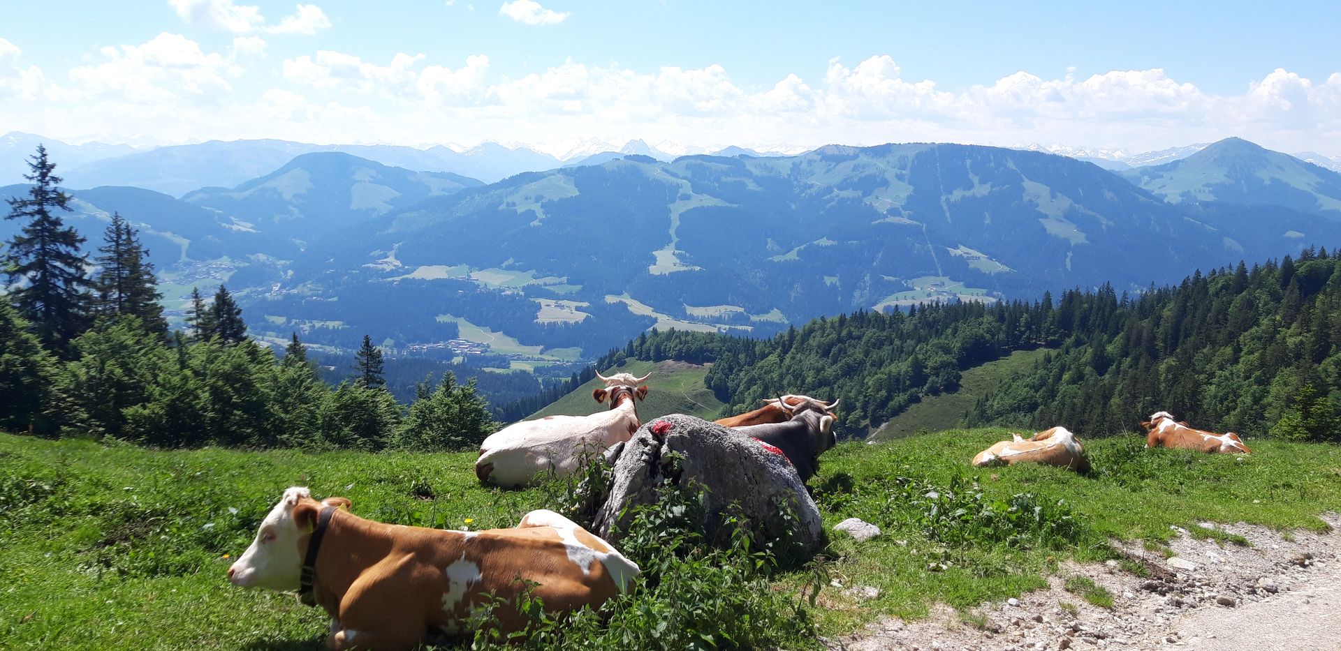 Heute bin ich mal wieder in der Koasa gefahren und hab eine meiner Lieblingstouren gemacht: Die Überschreitung des westlichsten Teil des Wilden Kaisers über die Hackenköpfe. Es handelt sich dabei um eine recht anspruchsvolle Unternehmung, die im Bereich der Hackenköpfe mit etlichen kleineren Kletterpassagen aufwartet (meist I, zwei Stellen II) und über lange Zeit ausgesetzt im Absturzgelände verläuft (Bewertung T5). Der Aufstieg zum Scheffauer und der Abstieg vom Wiesberg sind etwas leichter (T4 bzw. T3). Zunächst geht es auf dem klassischen Südanstieg über die Steiner Hochalm zum Scheffauer. Von dessen Gipfel zurück in die Mulde, wo auch der Widauer-Steig von Norden heraufkommt. Hier über den grünen Hügel hoch und zu einer kleinen Felswand hin, wo die Route über die Hackenköpfe beginnt. Praktischerweise ist dies auch gleich die Schlüsselstelle (II) - sofern man diese bewältigt, kann man sicher sein, dass es nicht mehr schwerer wird. Und wenn man doch an eine härtere Stelle gerät, weiß man, dass man falsch gegangen ist. Die Route ist nicht beschildert, aber gut mit roten Punkten und Steinmännern markiert. Ein Verhauer ist dennoch schnell mal passiert... Nach dem Östlichen Hackenkopf wird das Gelände immer gutmütiger und läuft in den Wiesen der Kopfkraxn aus. Ich hab es heute mit der Kraxn gut sein lassen, da mein Wasservorrat hier schon fast erschöpft war, aber natürlich bietet es sich an, das Sonneck auch noch mitzunehmen. Zurück über den Wiesberg-Steig und die Kaiser-Hochalm. Und dann endlich eine, in den schee koidn Hinterstoana Sää!