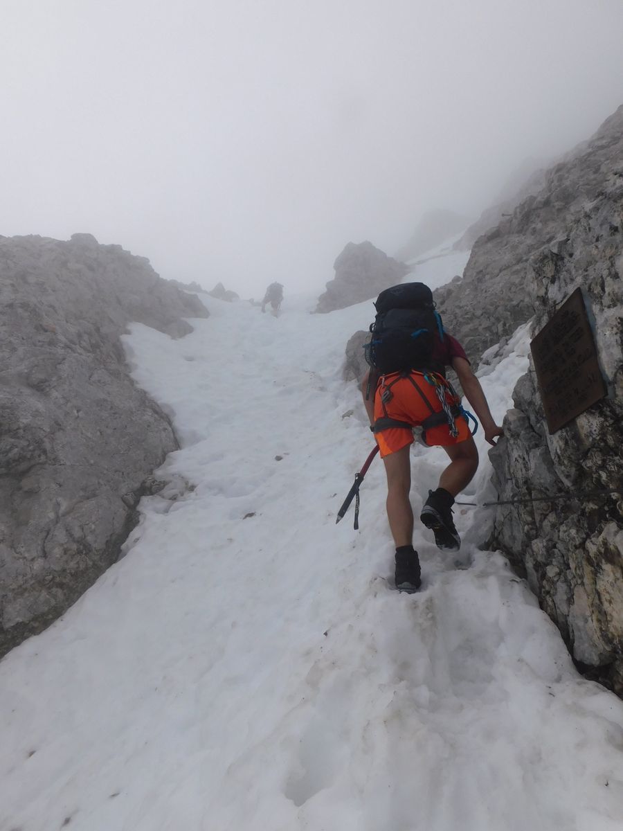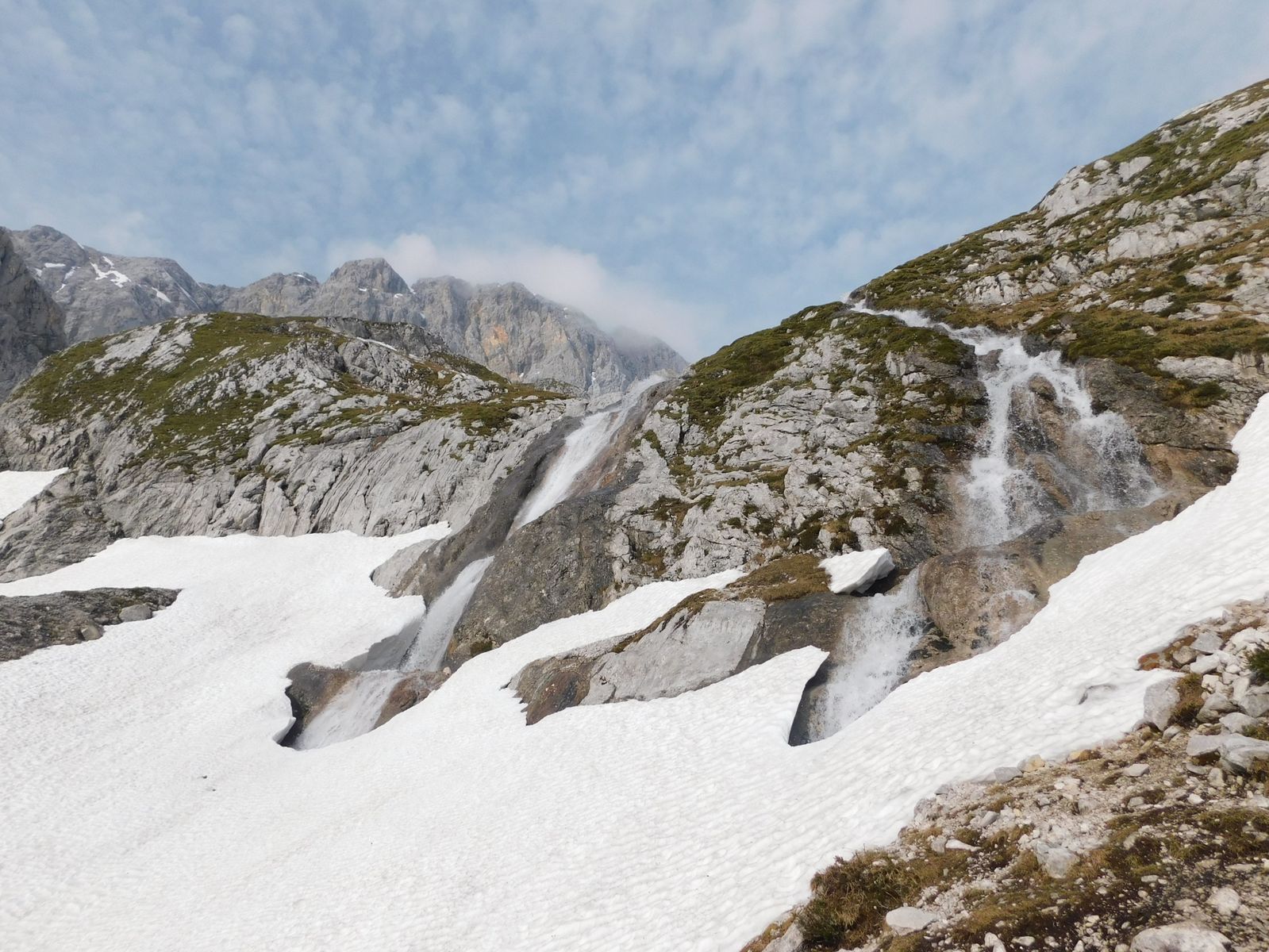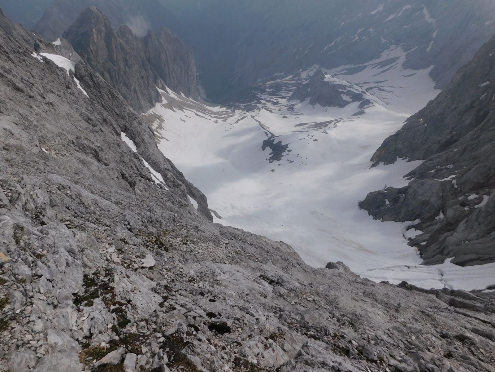 Eine geschlossene Schneedecke ging ungefähr ab 2100 los. In den Klettersteig-Stellen war bis zur Irmerscharte alles schneefrei, bis auf 2 kurze Stellen.