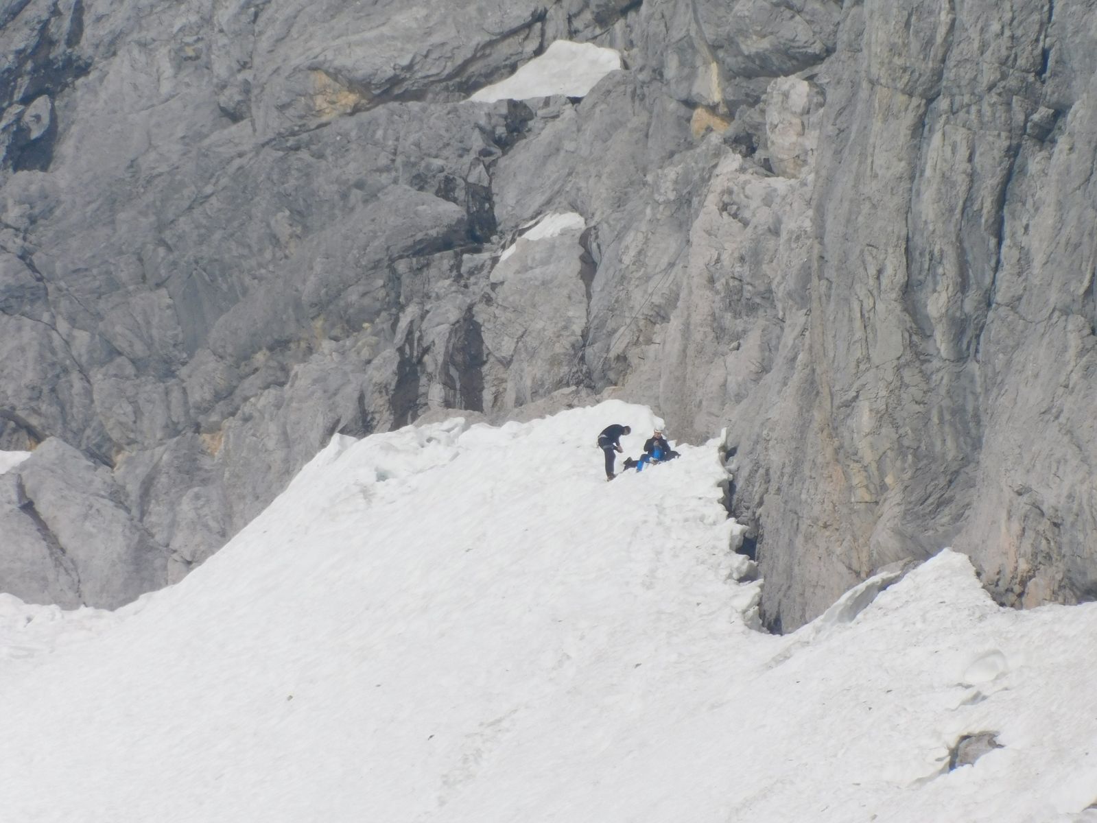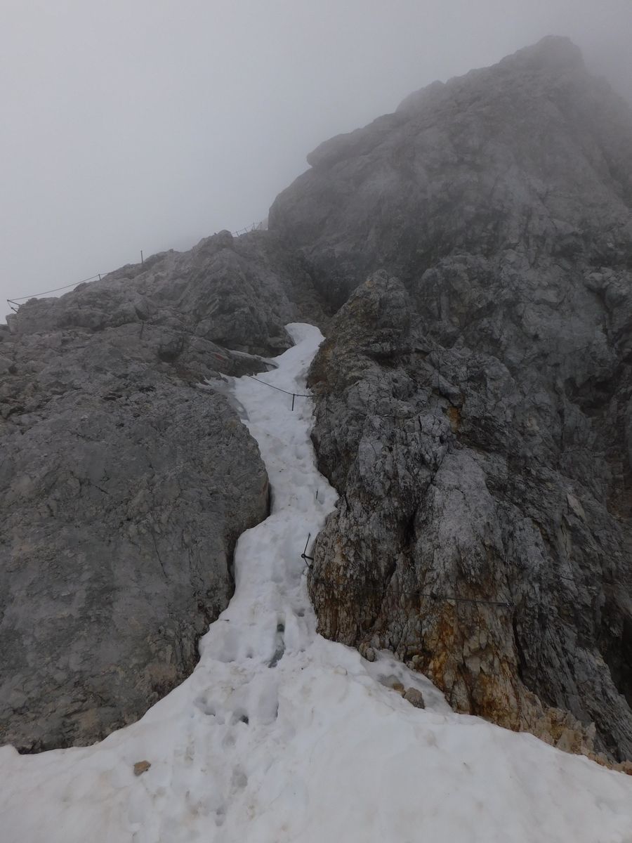 Ab der Irmerscharte gabs mehr Schnee, aber es gab eine gute Spur und das Drahtseil war nur an ein paar Stellen unter dem Schnee vergraben. An sich waren die Verhältnisse gut (für Leute mit genug Erfahrung bei solchen Touren)!
