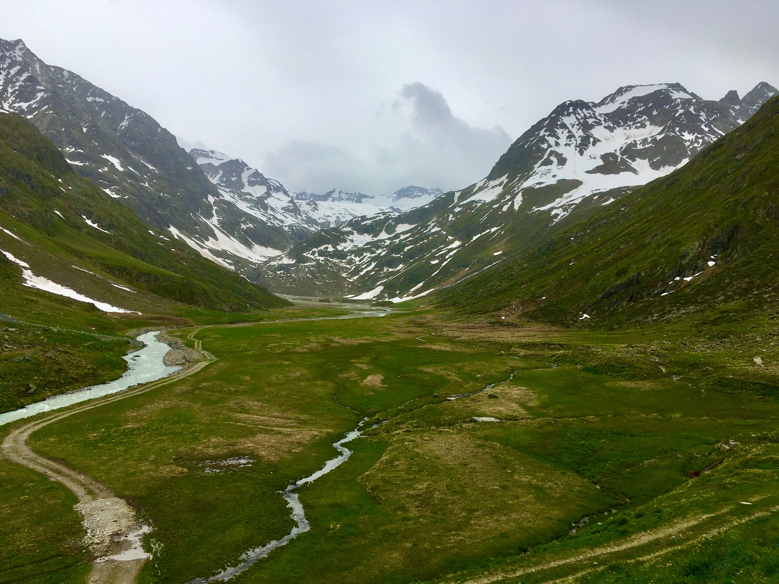 Heute ging es mit dem Radl von Gries zur Amberger Hütte und dann noch weiter durch die sog. Sulze bis zur Abzweigung des Weges in das Roßkar. Hinter der Amberger Hütte ist der Weg teilweise sehr ruppig, davor ist es teilweise steil und etwas bockig, insgesamt aber gut machbar (nur halt keine Forststraßenautobahn, wie man sie sonst häufig in Österreich findet - was der Beliebtheit der Radtour keinen Abbruch tut). Die Hitze der vergangenen Tage hat den Schnee wirklich "gefressen" - die durchgehende Schneedecke begann erst auf 2.400 m. Für die Abfahrt zum Radldepot in der Sulze habe ich mich in und neben einer Bachrinne mit mehrfachem Abschnallen mit den Skiern bis in den Talboden hinuntermogeln können.