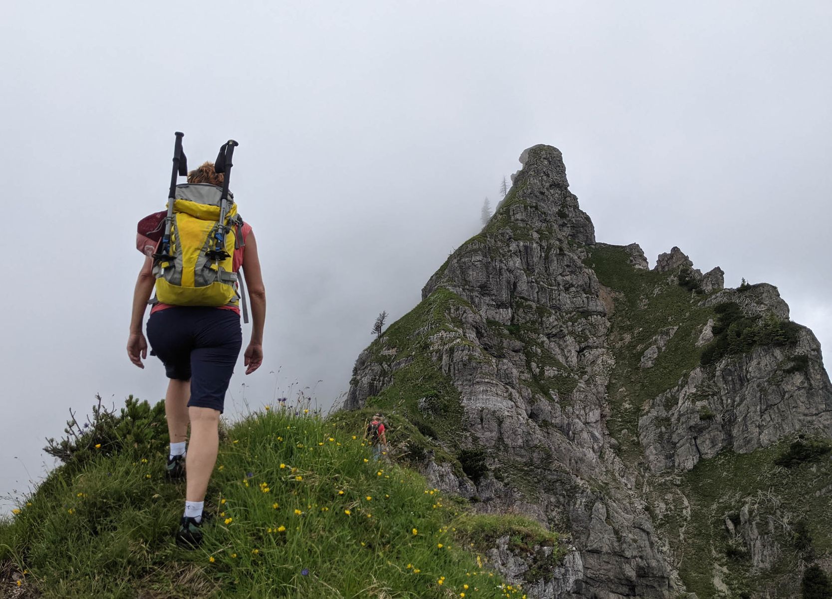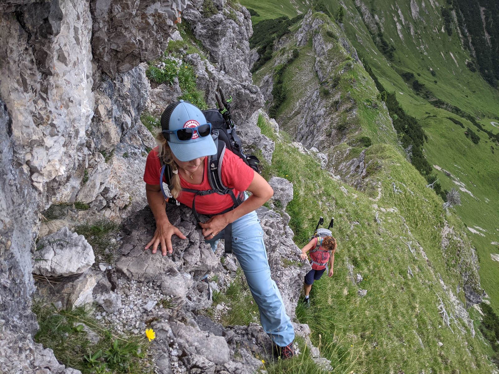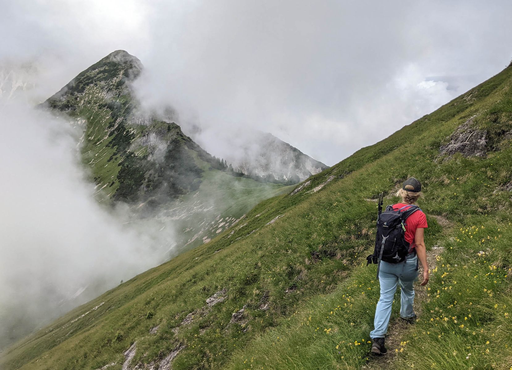Für die Rundtour von der Ackernalm sollte man ungefähr sechs Stunden einplanen und den zweiten Schwierigkeitsgrad UIAA sicher beherrschen, wobei das eigentlich nur eine Passage ist. Ansonsten braucht man sehr gutes Orientierungsvermögen, sowie absolute Trittsicherheit … aber mit Sicherheit kein Gewitter! Wir hatten viel Nebel, dafür trafen wir bis zum Hinteren Sonnwendjoch niemand anderen.