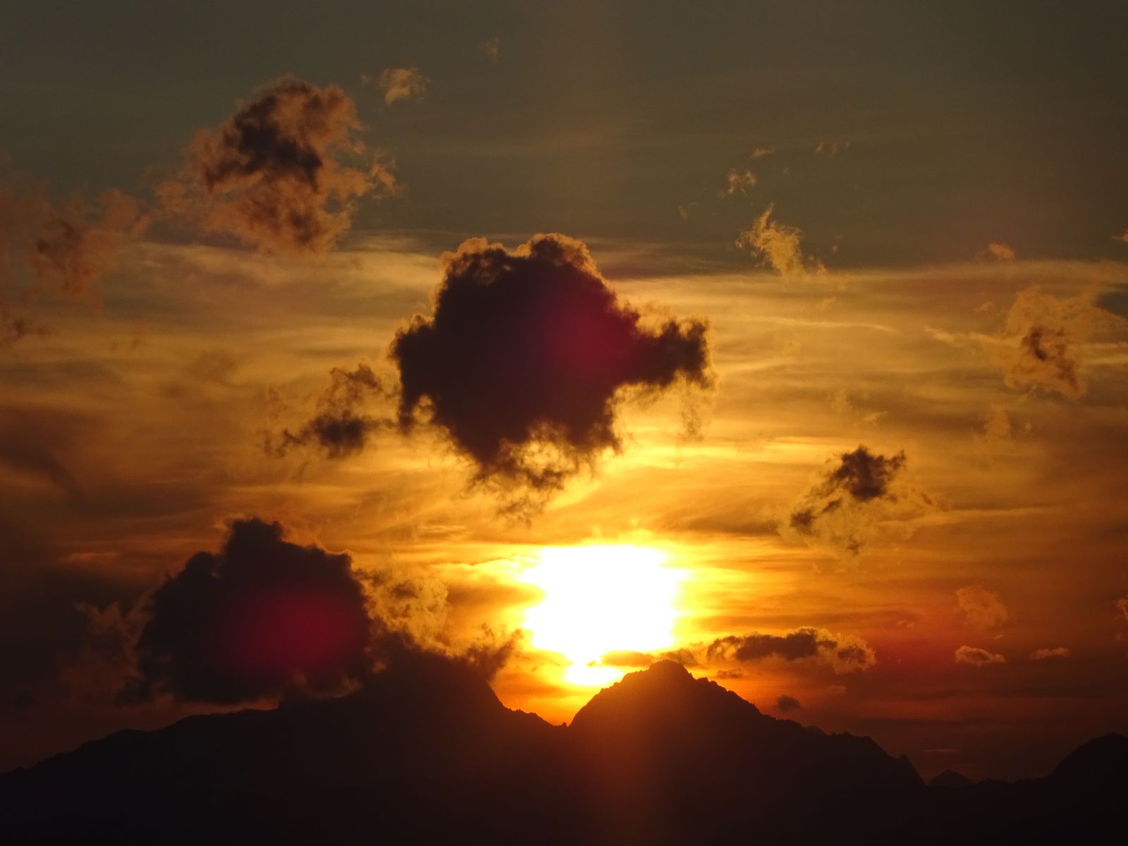 4: Des is koa Vulkanausbruch, sondern die Sonne geht "einfach" zwischen Großem Möseler und Turnerkamp unter...
