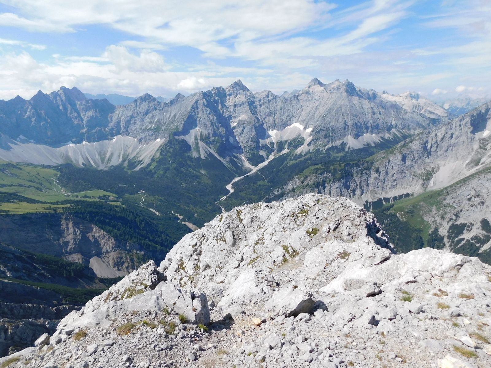 Birkkarspitze und Ödkarspitzen so gut wie schneefrei. Das Schlauchkar konnte man aber nicht einsehen: