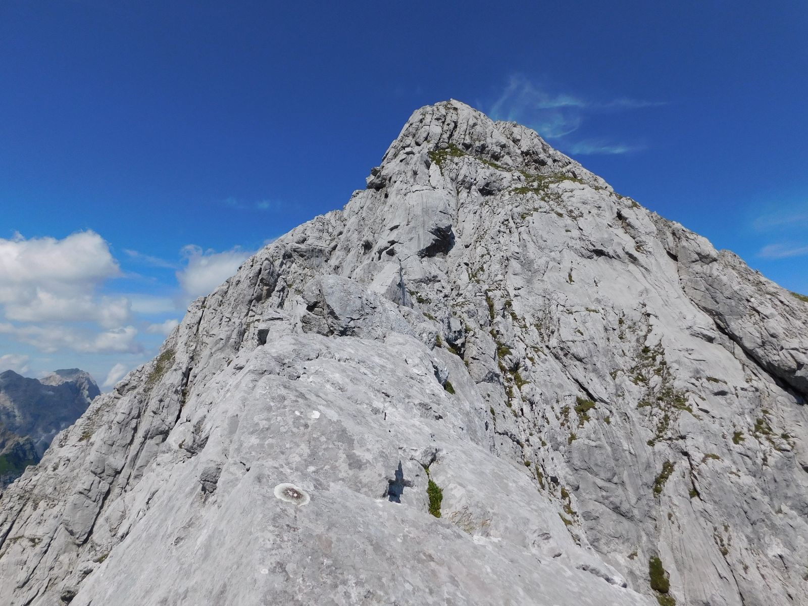 Blick zurück zum Gipfelaufbau, direkt nach der Schlüsselstelle: