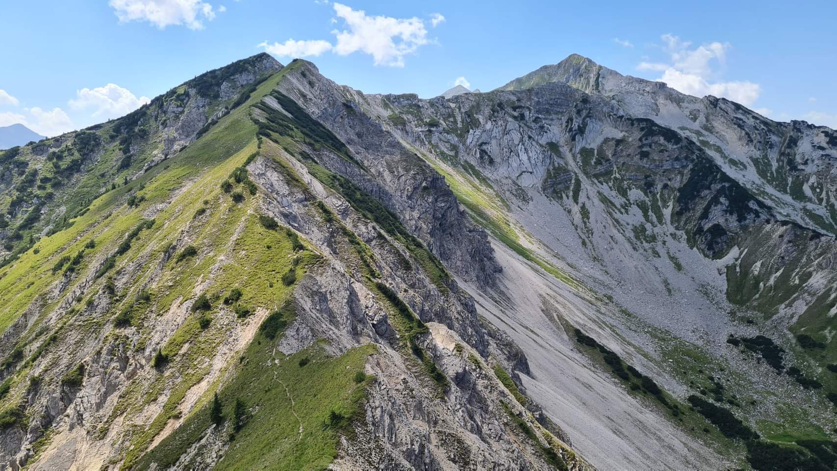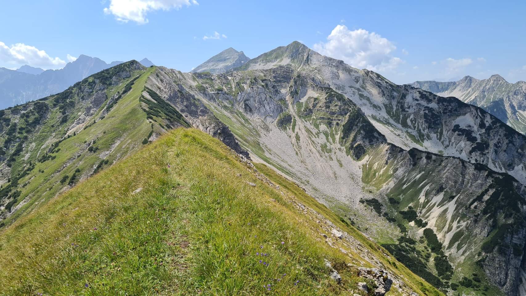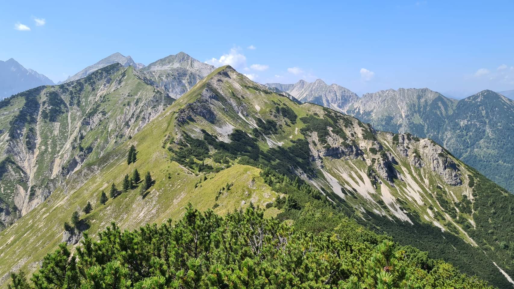 Sehr lange, sehr schöne und absolut einsame Gratwanderung im Karwendel (ein einziger Wanderer kam mir im Abstieg von der Bayerkarspitze entgegen). Genug zu trinken mitnehmen, GPS-Gerät sehr zu empfehlen.