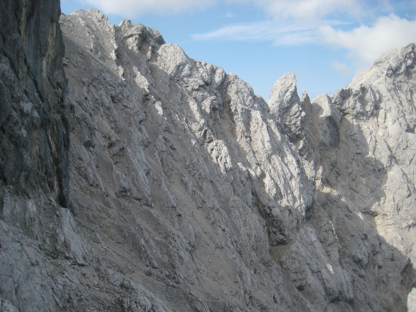 Die Eisenstifte vom alten Klettersteig waren an manchen Stellen auch für die Fortbewegung praktisch:
