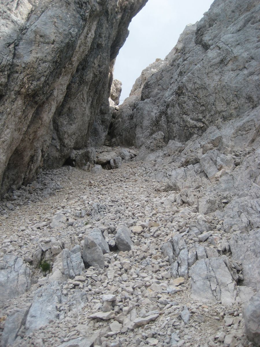 Schuttrinne mit Engstelle oben. Mit meinem Rucksack musste ich mich schon ziemlich durchzwängen, aber vielleicht liegts auch an mir ![]()