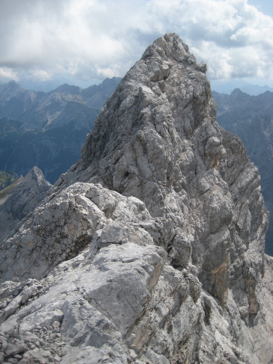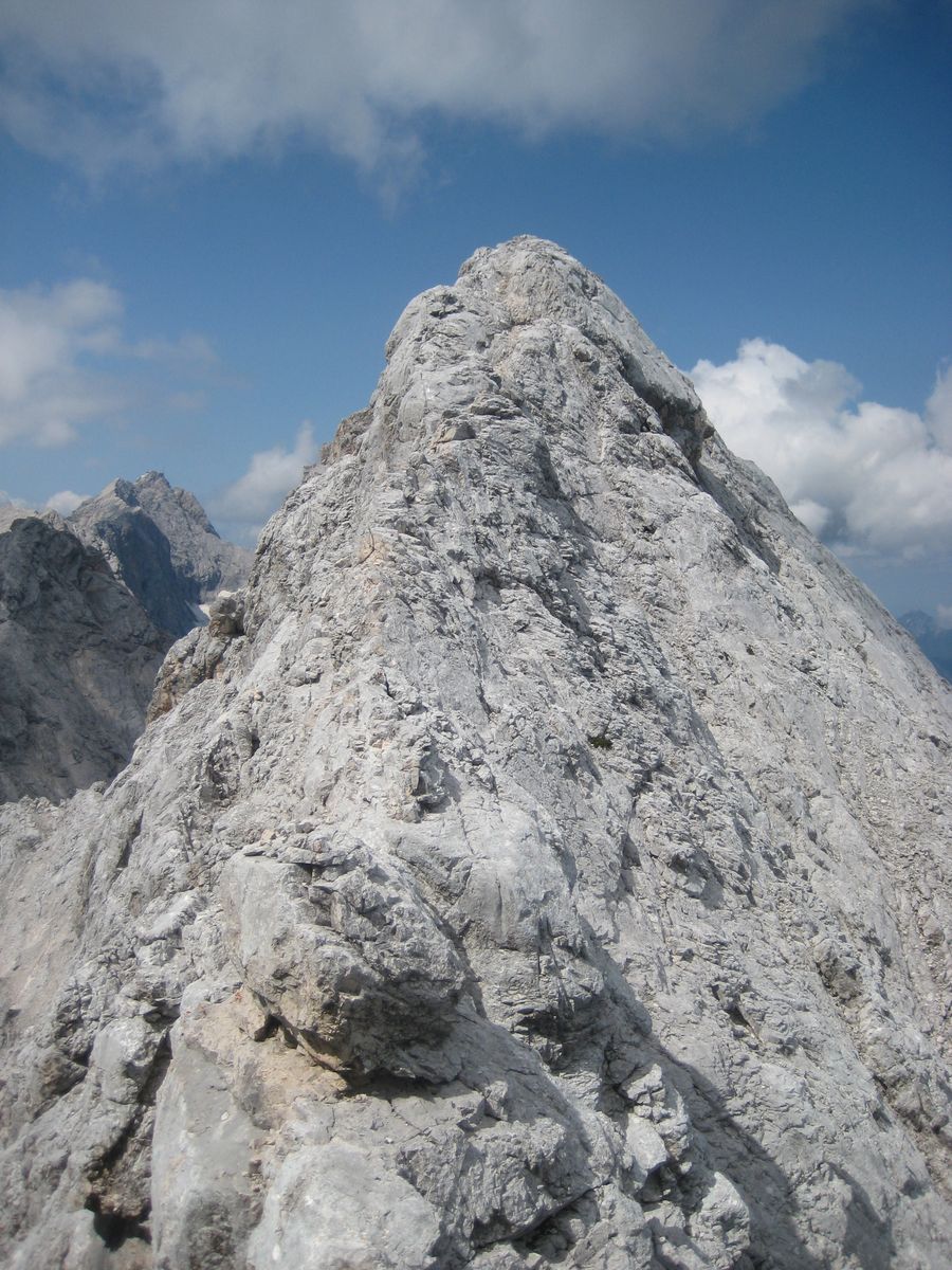 In der Scharte steigt man nach rechts auf und folgt immer den Eisenstiften bis zum Signalgipfel (Westgipfel). Von dort bleibt man immer auf dem Grat oder ganz knapp daneben, bis zur Scharte zum Hauptgipfel. Eine schöne Tour - super wars! Heute waren auch einige Leut auf dem Blassengrat unterwegs, ich hab aber nur einen schnellen Einzelgänger getroffen (die anderen waren noch länger im Grat unterwegs). Auf der ganzen Tour gabs nur ein paar Mini-Schneefelder im Grieskar, denen man gut ausweichen kann (ich nutze die aber gerne).