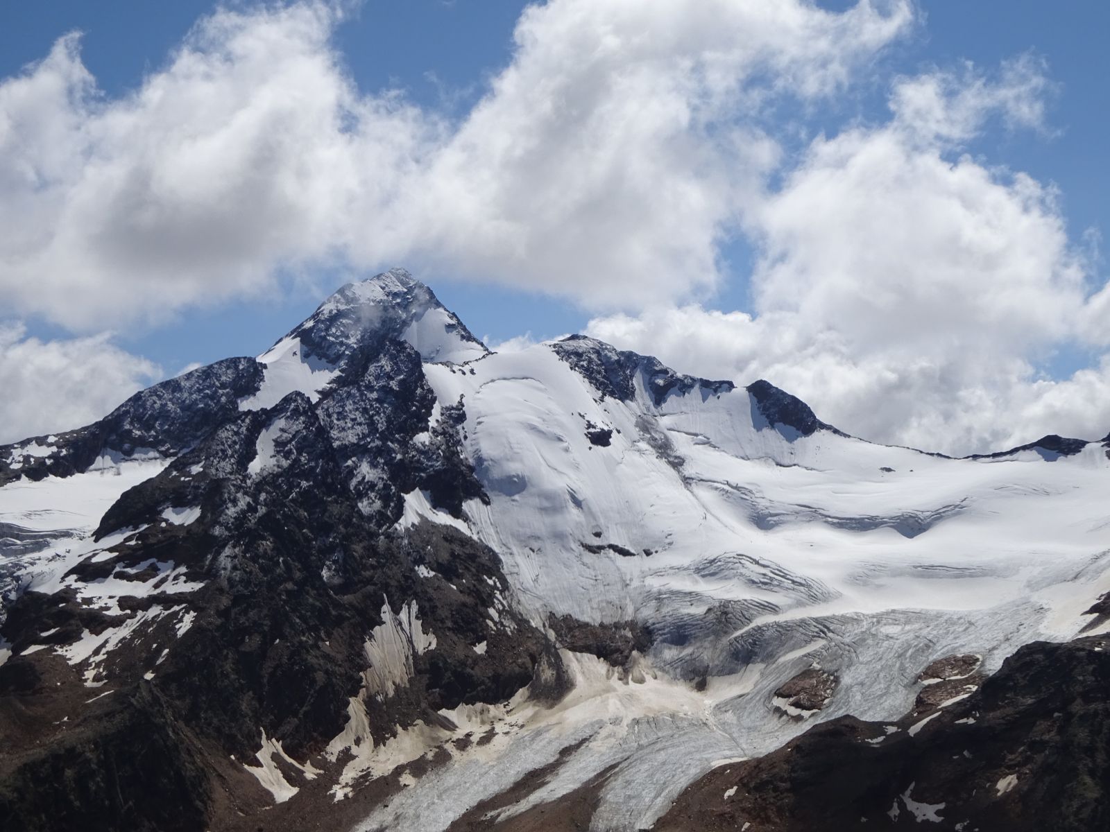 8/9: Schon ein gewaltiger, formschöner Berg, die Weißkugel (Ich persönlich mein ja immer noch, dass die Weißkugel und die Weißseespitze bei der Erstellung der ersten Karten vertauscht worden sind, denn weder habe ich je an der Weißkugel kuglige Formen wahrnehmen können, noch hat die Weißseespitze eine Spitze...)