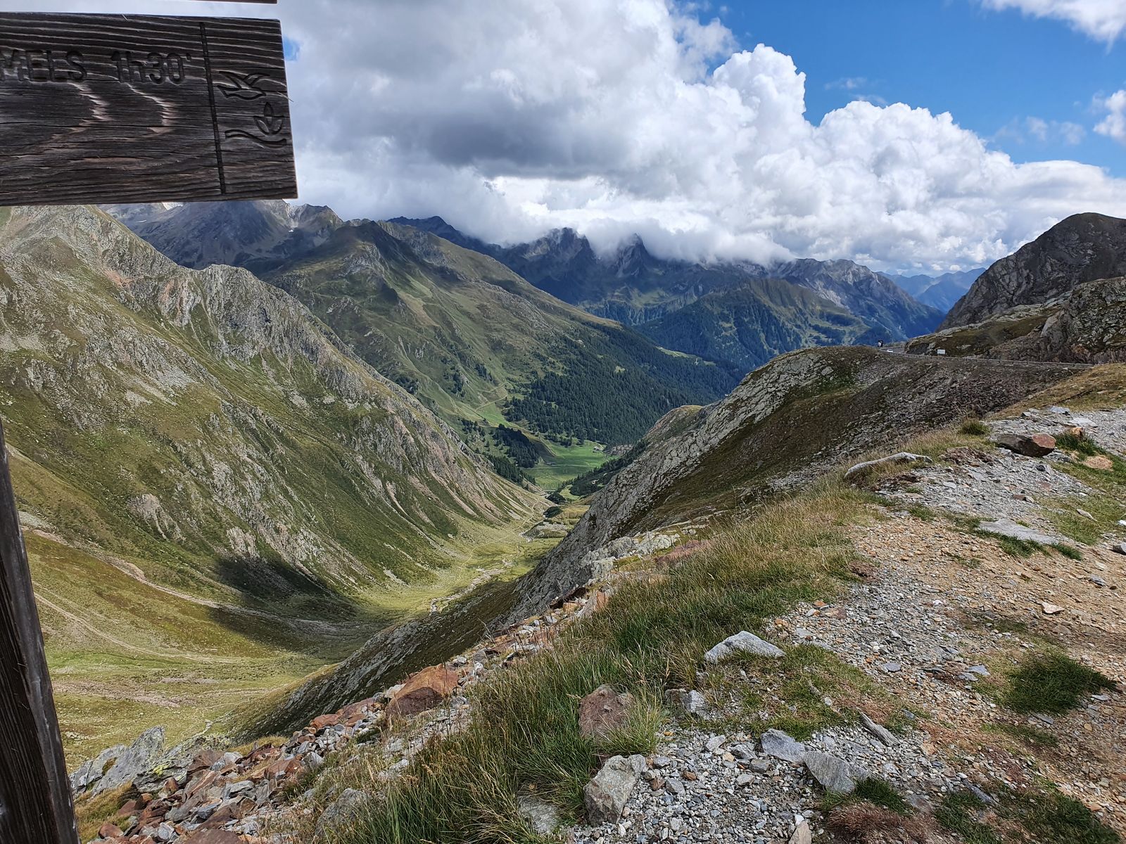 Achtung: hier wird es jetzt etwas rustikal! Im letzten Sommer war Obergurgl für 2 Monate von der Außenwelt abgeschnitten. Bei einer der vielen Galerien kam soviel Zeug runter, dass man nur über Italien nach Obergurgl fahren konnte. Ich hatte den oberen Weg ab Lenzenalm probiert, ist aber dringend abzuraten. Da ist noch alles in Bewegung. Der Murenabgang ging über 500 Höhenmeter. Der WW unterhalb der Straße/Galerien kurz oberhalb des Bachs ist ab Sahnestüberl bis kurz nach der Holzbrücke nutzbar. Ab dort bis kurz vor Hohenbrücke aber existiert kein WW mehr! Man kann bei der Galerie zwischen Leitplanke und Abriß sicher gehen, nur eine Stelle sieht wenig vertrauenserweckend aus: da ist in der Galerie die Decke durch mehrere Holzpfähle verstärkt, außerhalb sieht man starke Risse an der überstehenden Galeriedecke. Also schnell durch.