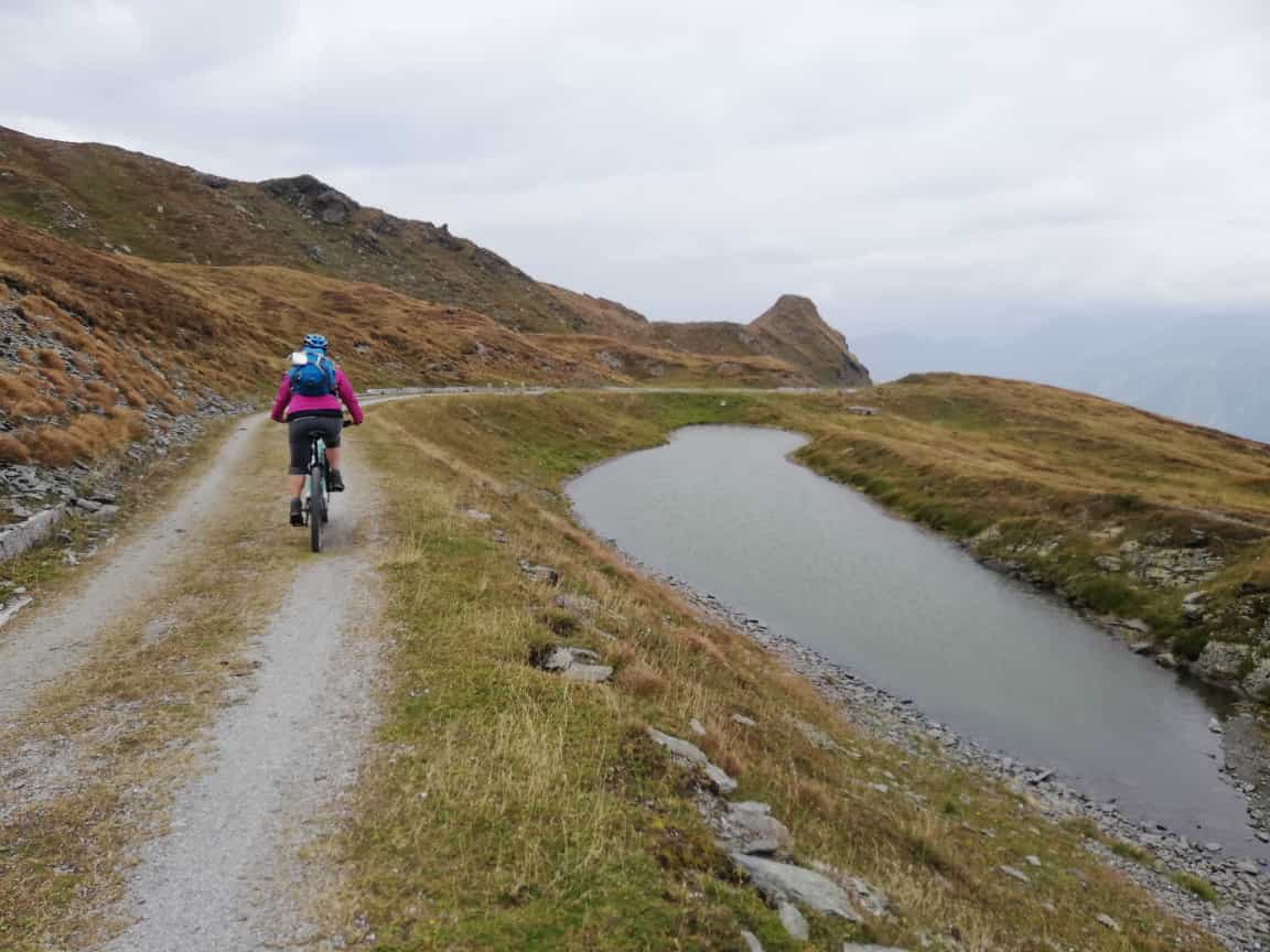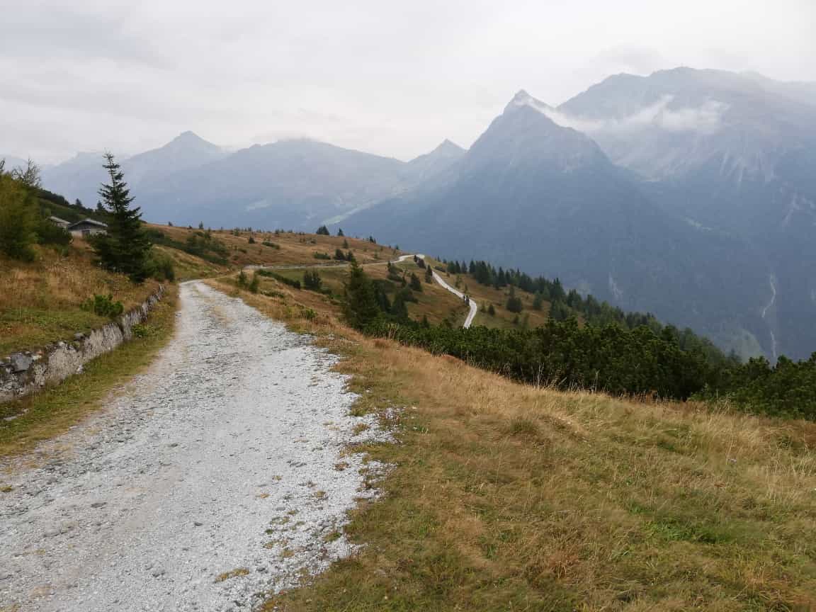 Vom Sandjöchl könnte man noch einen Abstecher auf der Höhenstraße weiter nach Westen zum Portjoch machen. Dafür war (uns) aber das Wetter zu schlecht, denn direkt am Kamm war es windig, frisch und teilweise leichter Regen. Die Straße selbst war schon windgeschützter.