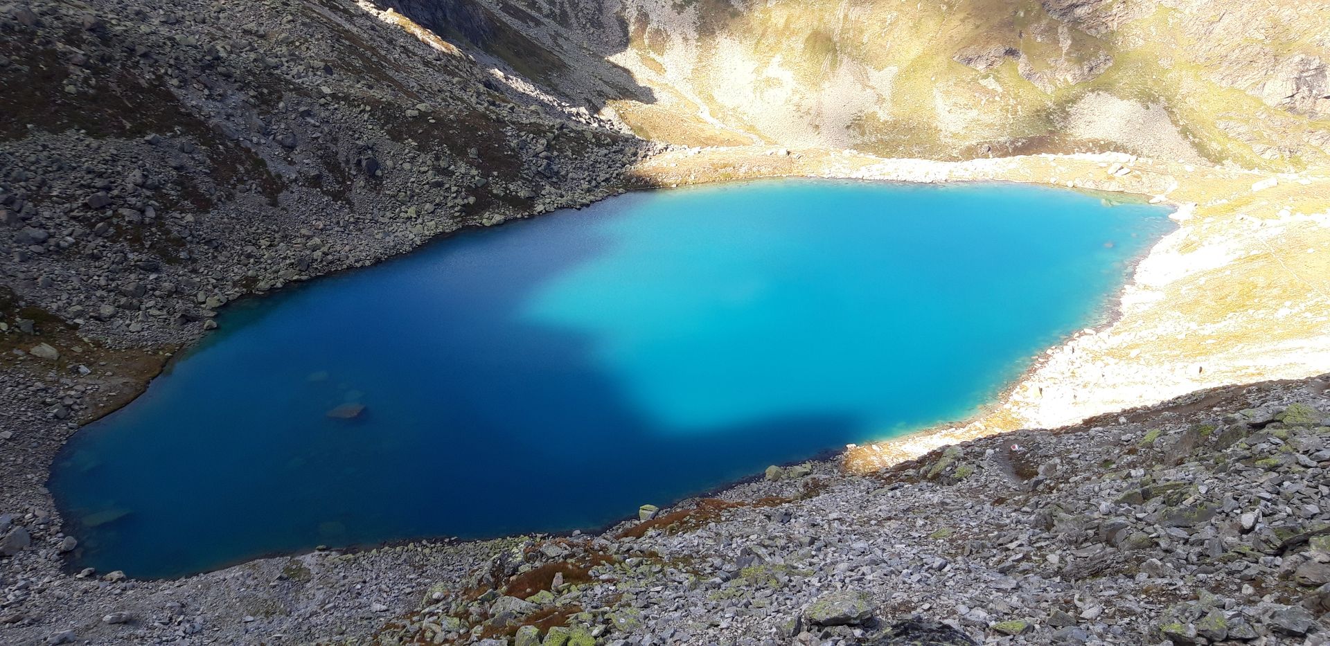 Ursprünglich wollte ich nach dem Gipfel eigentlich über die Kaunergrathütte absteigen, aber als ich unterwegs die Beschilderung zum Mittelberglsee sah (und dieses Kleinod vom Gipfel aus erblickte), änderte ich meine Pläne, was sich als sehr lohnend herausstellte. Wenn ich die Tour nochmal mache (, was ich sicher tue), würde ich im Aufstieg über die Hütte gehen, da dann wirklich eine komplette Rundtour herauskommt.
