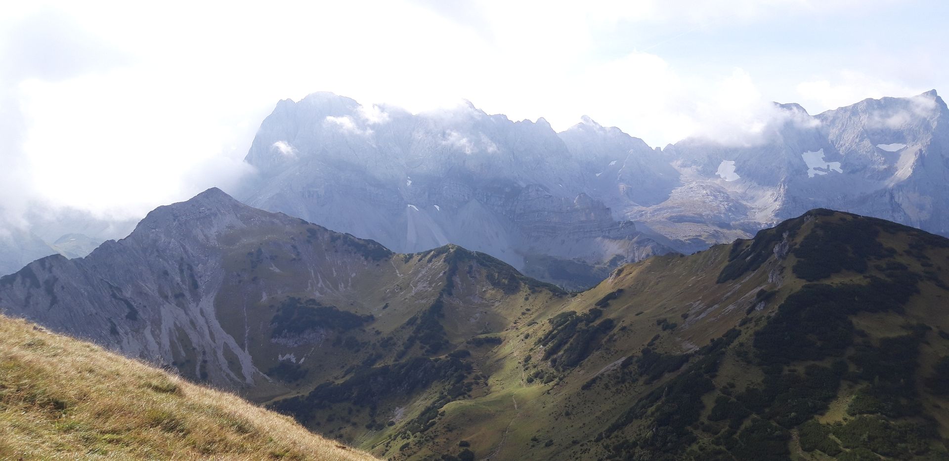 Hinweis: Natürlich kann man das Hahnkampl auch weglassen und beim Gramai Hochleger direkt ins Tal absteigen, aber davon würde ich abraten: 1. Verpasst man dann landschaftlich einiges. 2. Ist der direkte Weg teilweise unheimlich steil und unangenehm, weil da vor wenigen Jahren eine Art "Fahrstraße für Unimogs" angelegt wurde, der den alten (auch steilen, aber besser gehbaren Serpentinensteig) ersetzt hat. Keine Ahnung, wie man so was genehmigen kann - für mich auf jeden Fall der hässlichste Weg im Karwendel!