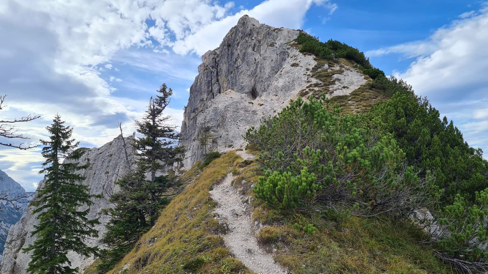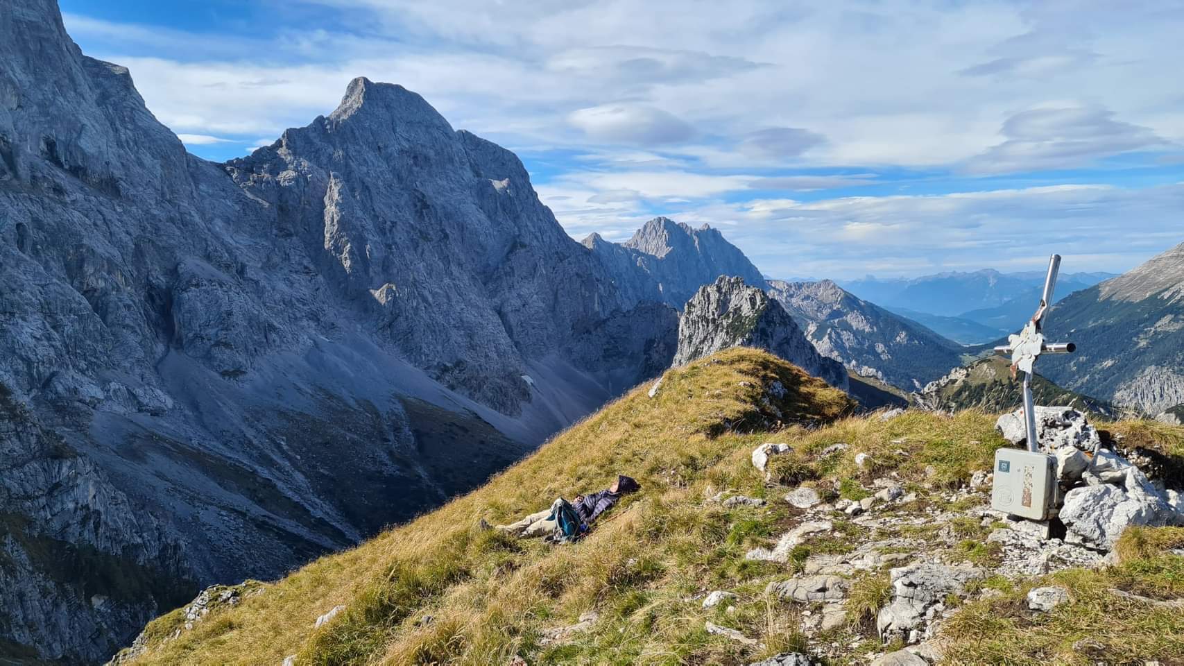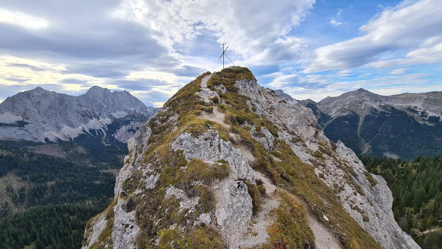 Von Hinterriss durch das Tortal auf die Tortalscharte und von dort auf den Torkopf. Kleines Gipfelkreuz , großartige Aussicht und eine Bergwiese, die zum Hinlegen einlädt. Abstieg ins schöne Rohntal und von dort Aufstieg über einen aussichtsreichen Pfad bis zum Sattel unterhalb des Gipfels und dann in leichter Kletterei (ziemlich bröseliger Fels) zum Gipfel. Abstieg zurück ins Rohntal und auf dem Forstweg nach Hinterriss.