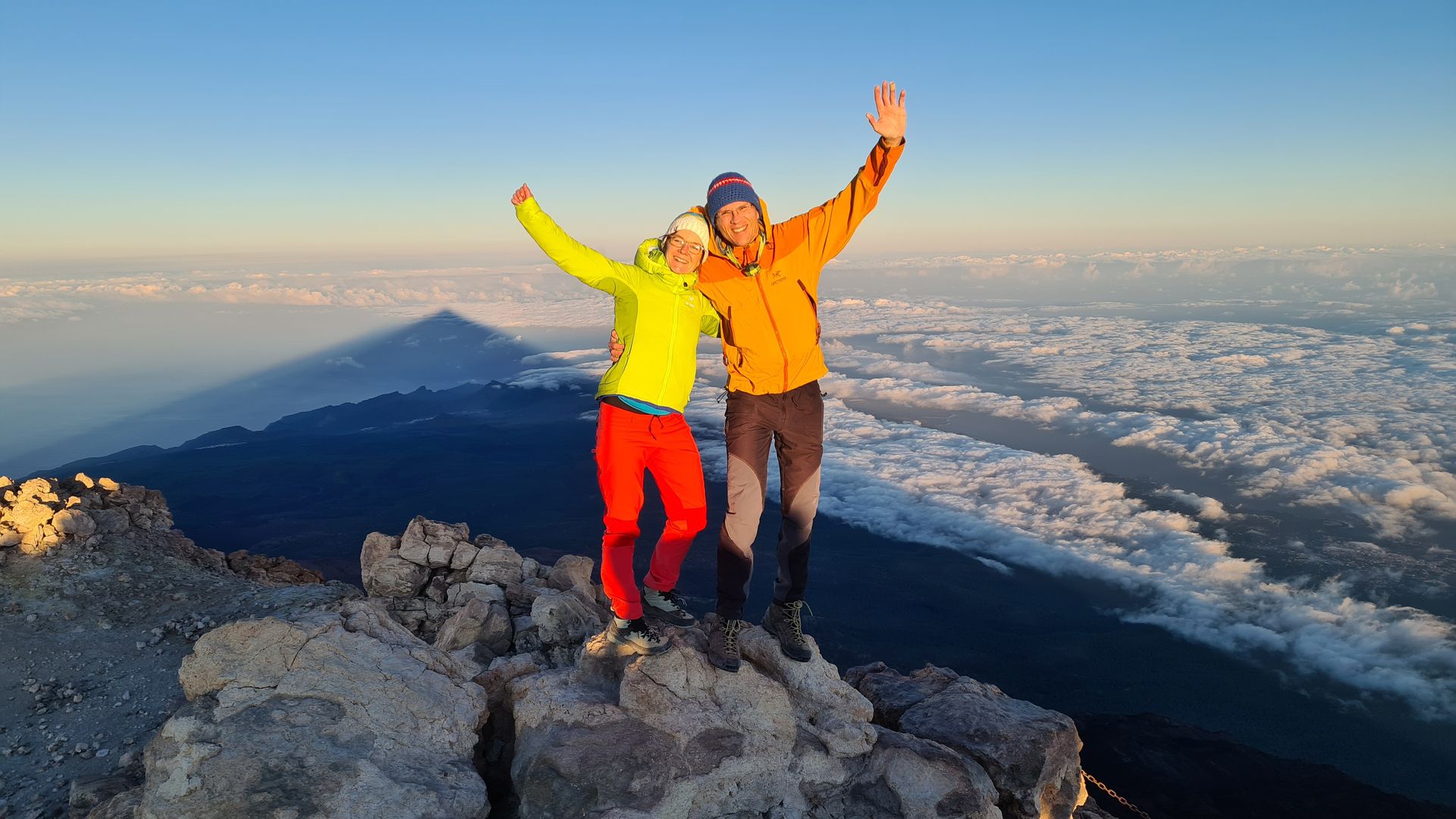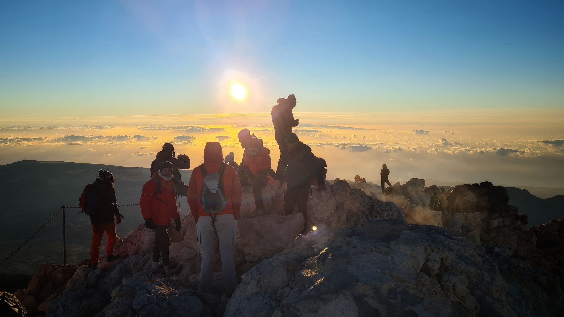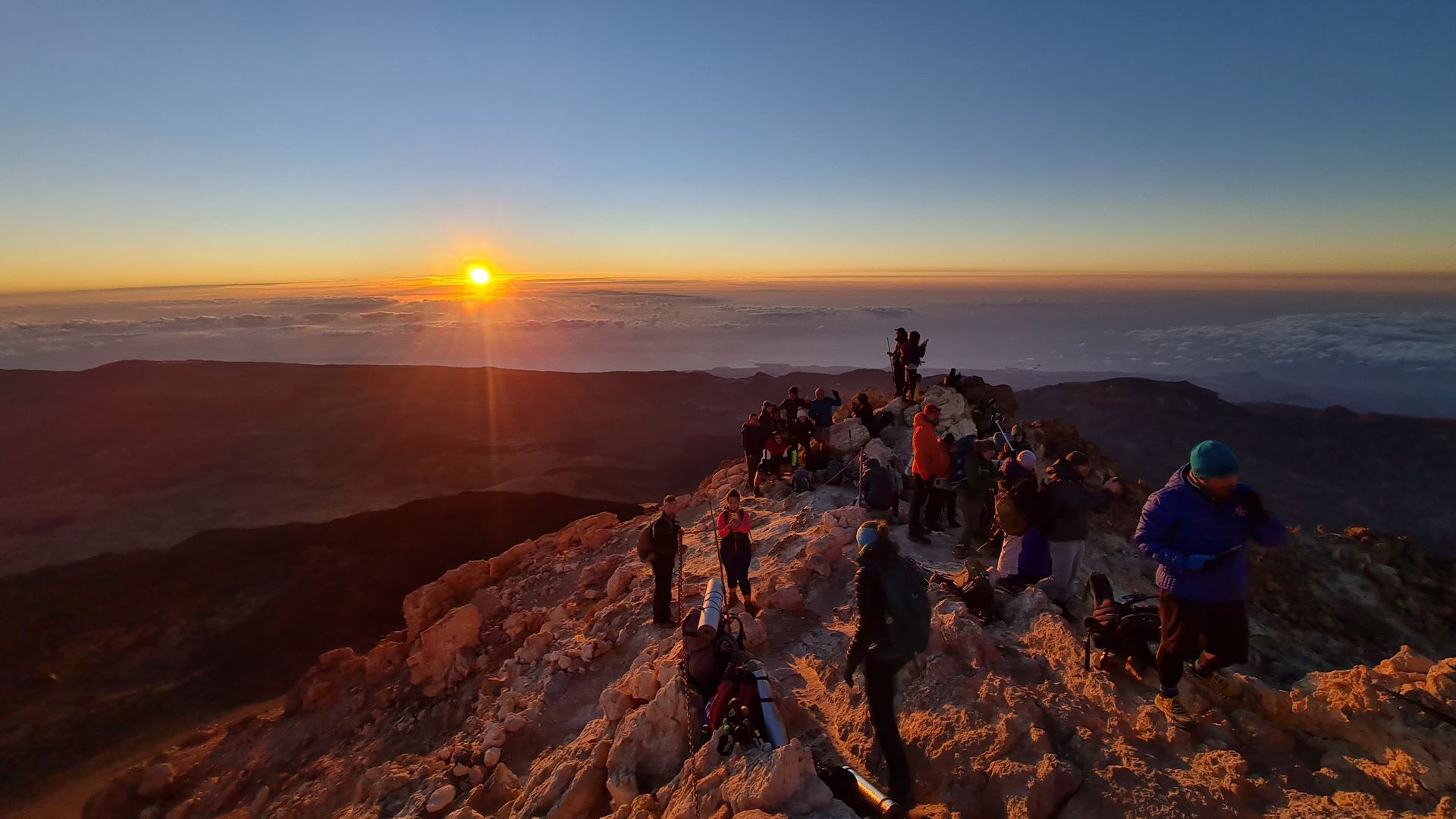 Start um 3:30 am Tabonal Negro im Schein der Stirnlampe bei 10°C. Kurzes Stück an der Straße, dann relativ steil und geröllig nach oben, bis man kurz nach dem Montaña Blanca auf den Hauptweg Nr.7 trifft, diesen weiter bis zum Gipfel. Dort waren wir um 7:30 Uhr bei beginnender Morgendämmerung. Um kurz vor acht ging dann die Sonne auf, ein tolles Schauspiel. Abstieg auf dem Weg 7 , vorbei an den Teide Eiern zurück zum Tabonal Negro.