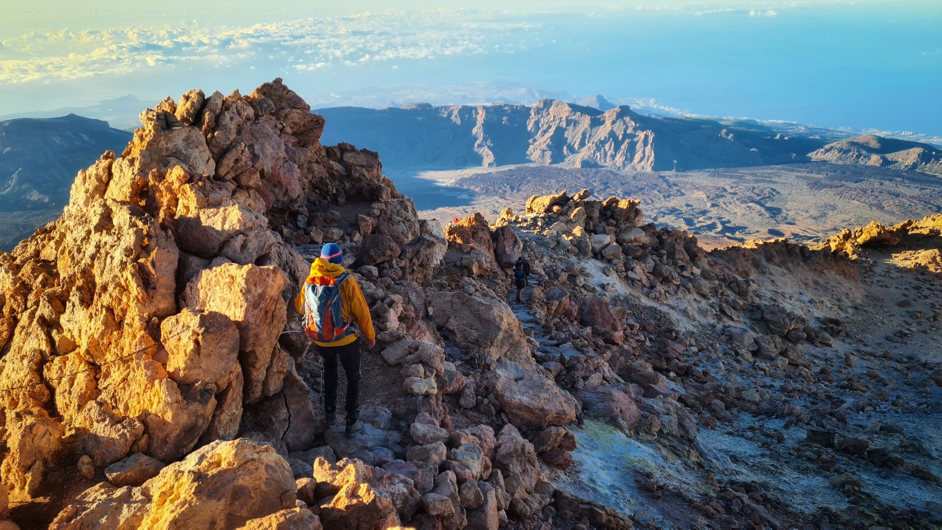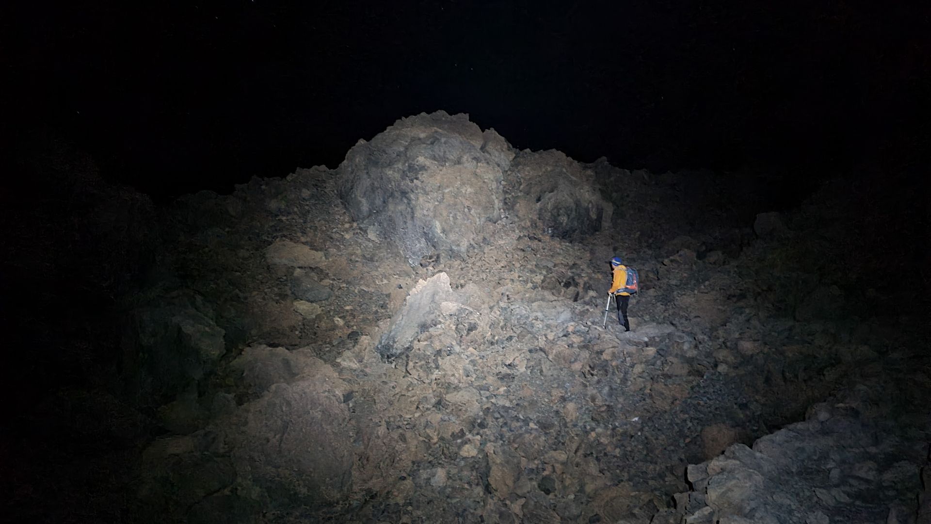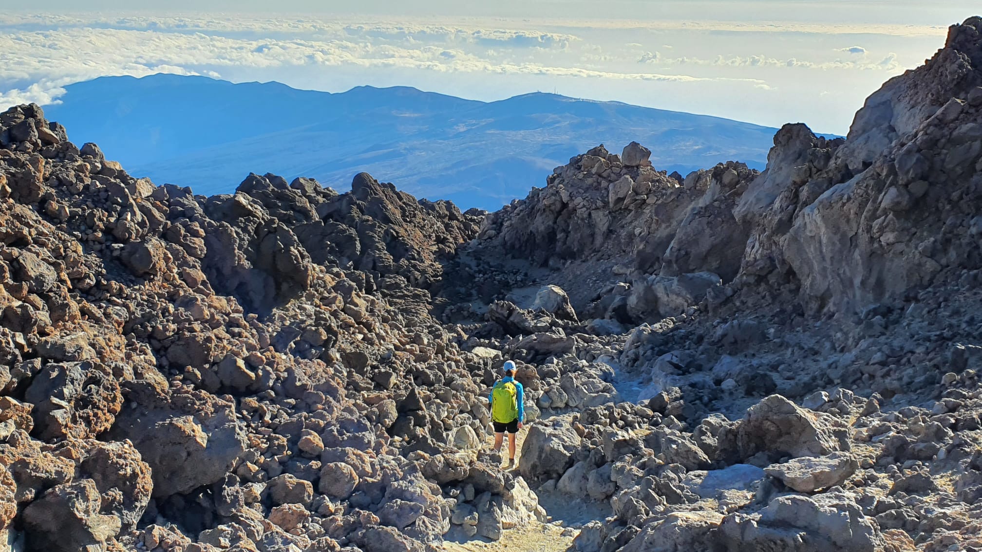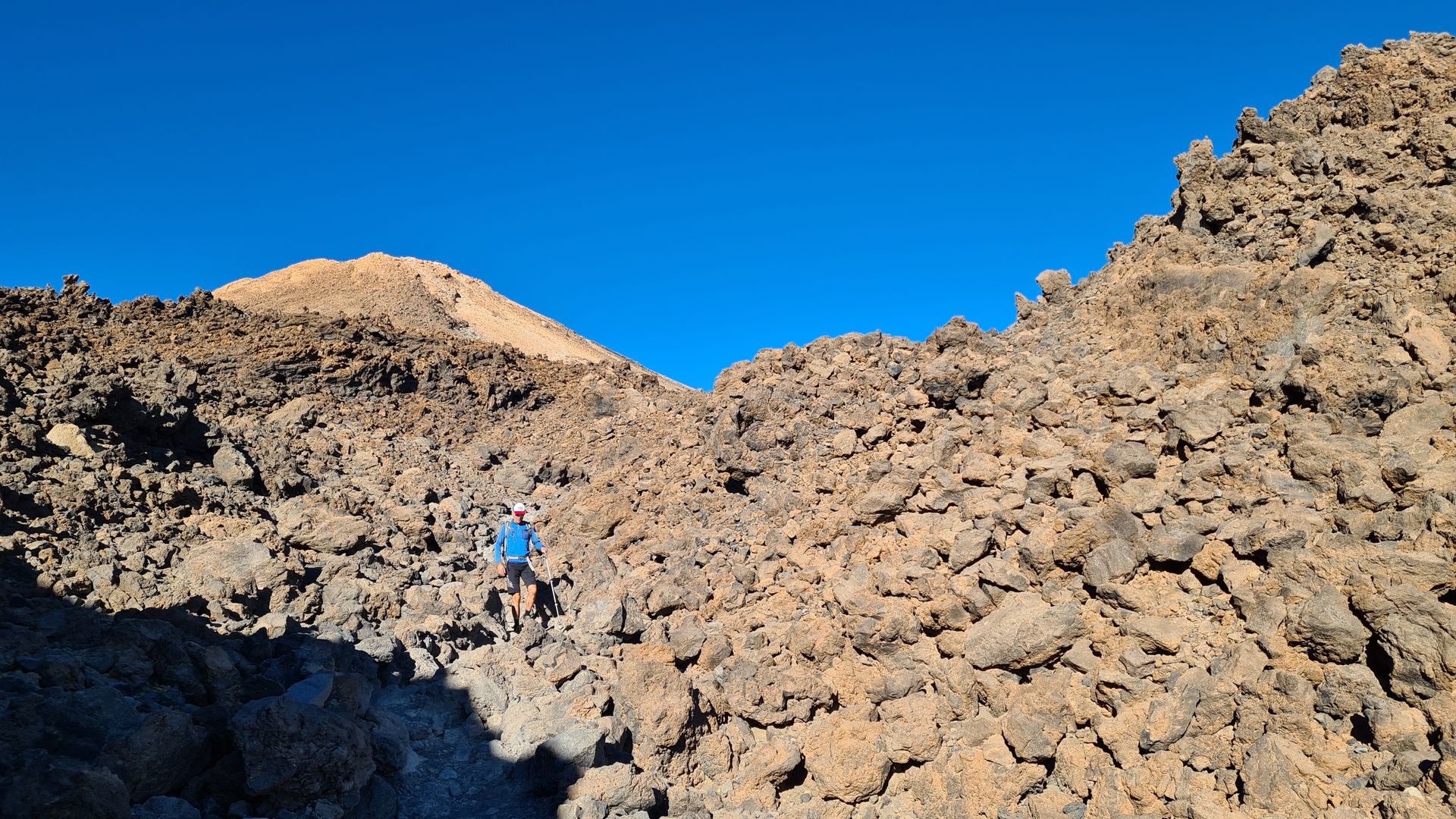 Start um 3:30 am Tabonal Negro im Schein der Stirnlampe bei 10°C. Kurzes Stück an der Straße, dann relativ steil und geröllig nach oben, bis man kurz nach dem Montaña Blanca auf den Hauptweg Nr.7 trifft, diesen weiter bis zum Gipfel. Dort waren wir um 7:30 Uhr bei beginnender Morgendämmerung. Um kurz vor acht ging dann die Sonne auf, ein tolles Schauspiel. Abstieg auf dem Weg 7 , vorbei an den Teide Eiern zurück zum Tabonal Negro.