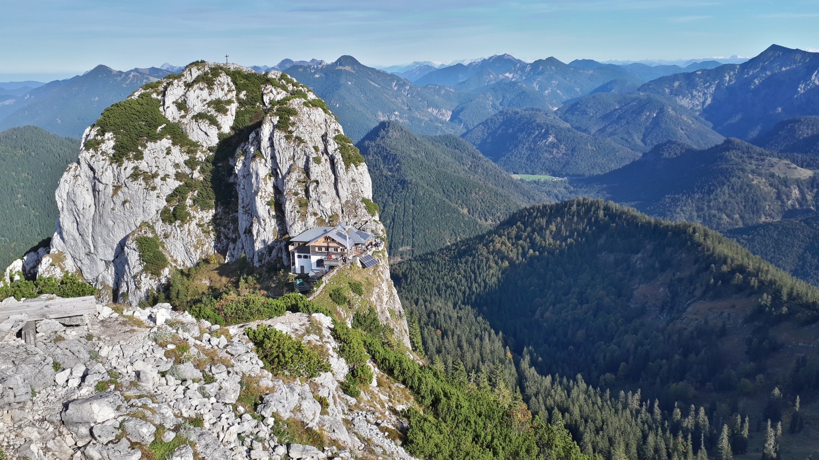 Wie es scheint, ist der Aufstieg zum Buchstein (Kreuth) aktuell gesperrt. Wie man im zweiten Bild sieht, kamen wenig später zwei Kletterer runter, aber deren Alternative wäre wohl abseilen über die Südwand gewesen. Ich hab's nicht riskiert.