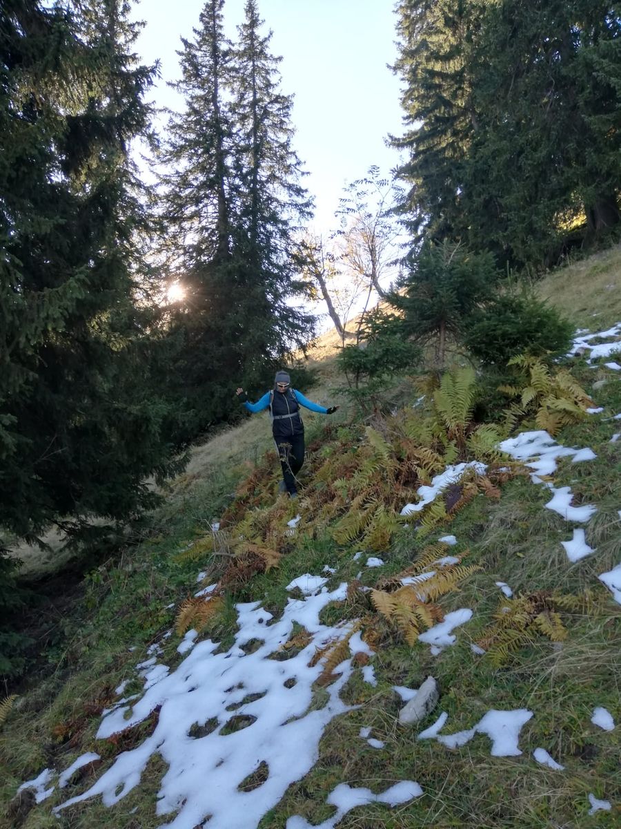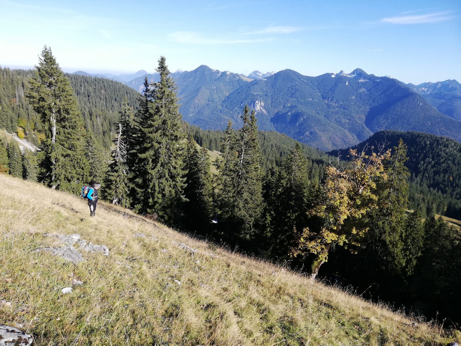 Von Bad Wiessee mit dem Rad über Bauer in der Au ins Söllbachtal, nach der starken Steigung nach der Luckengrabenalm links abbiegen Richtung Kreuth und am höchsten Punkt (P. 1285m) nochmal links abbiegen zur Weidbergalm (1400m). Von dort weglos zu Fuß am besten über den Ostrücken zum Gipfel, der zwischen Bäumen liegt und zwar weder Kreuz noch Buch hat, dafür auf der Nordseite einen Standplatz mit zwei Bohrhaken! Unterhalb allerdings zwar steiles, aber nur sehr botanisches Gelände. Wer da wohl klettert? ![]()
