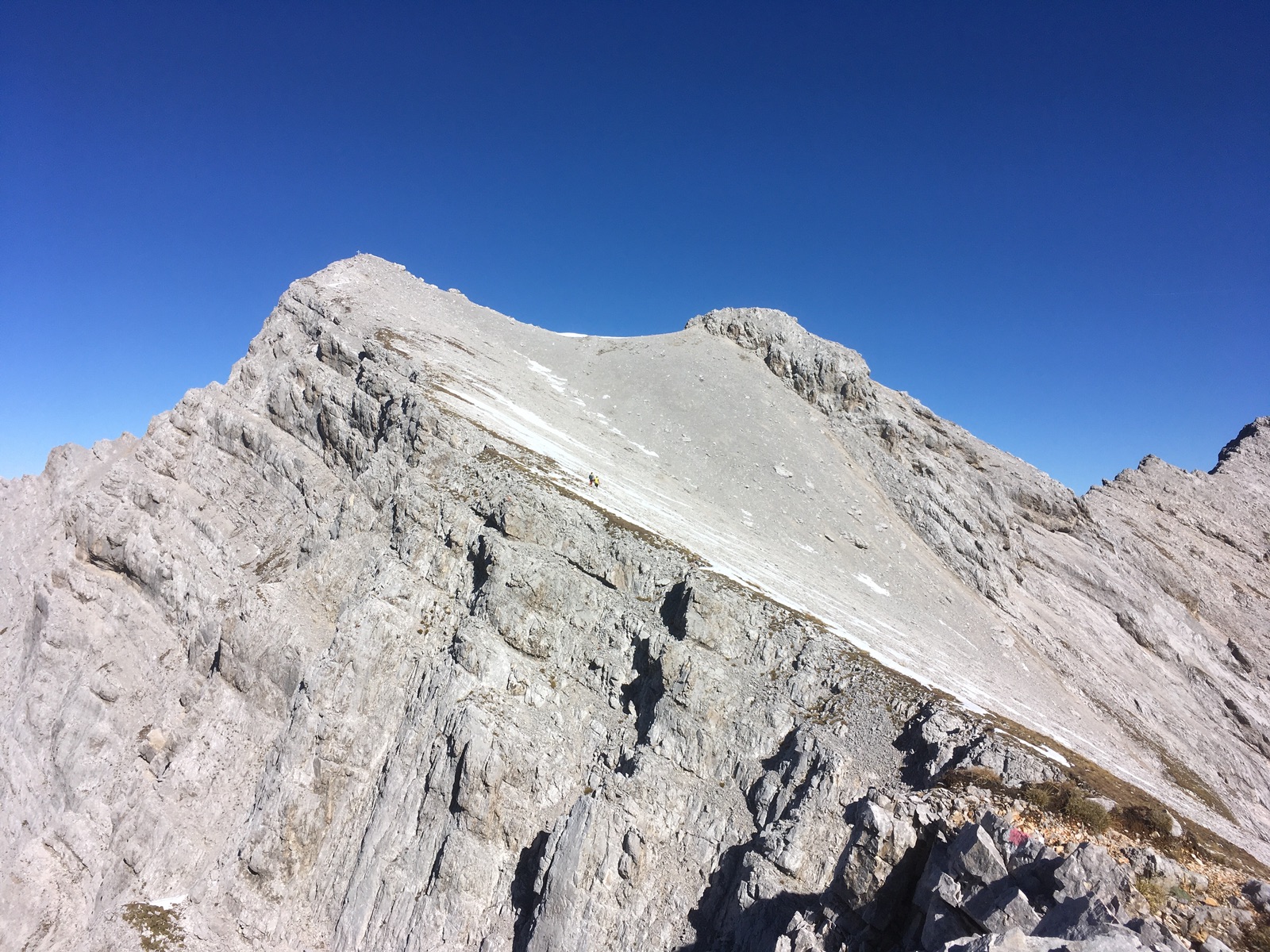 Beim Gratübergang kommt zuletzt nochmals eine etwas schwerer Stelle: