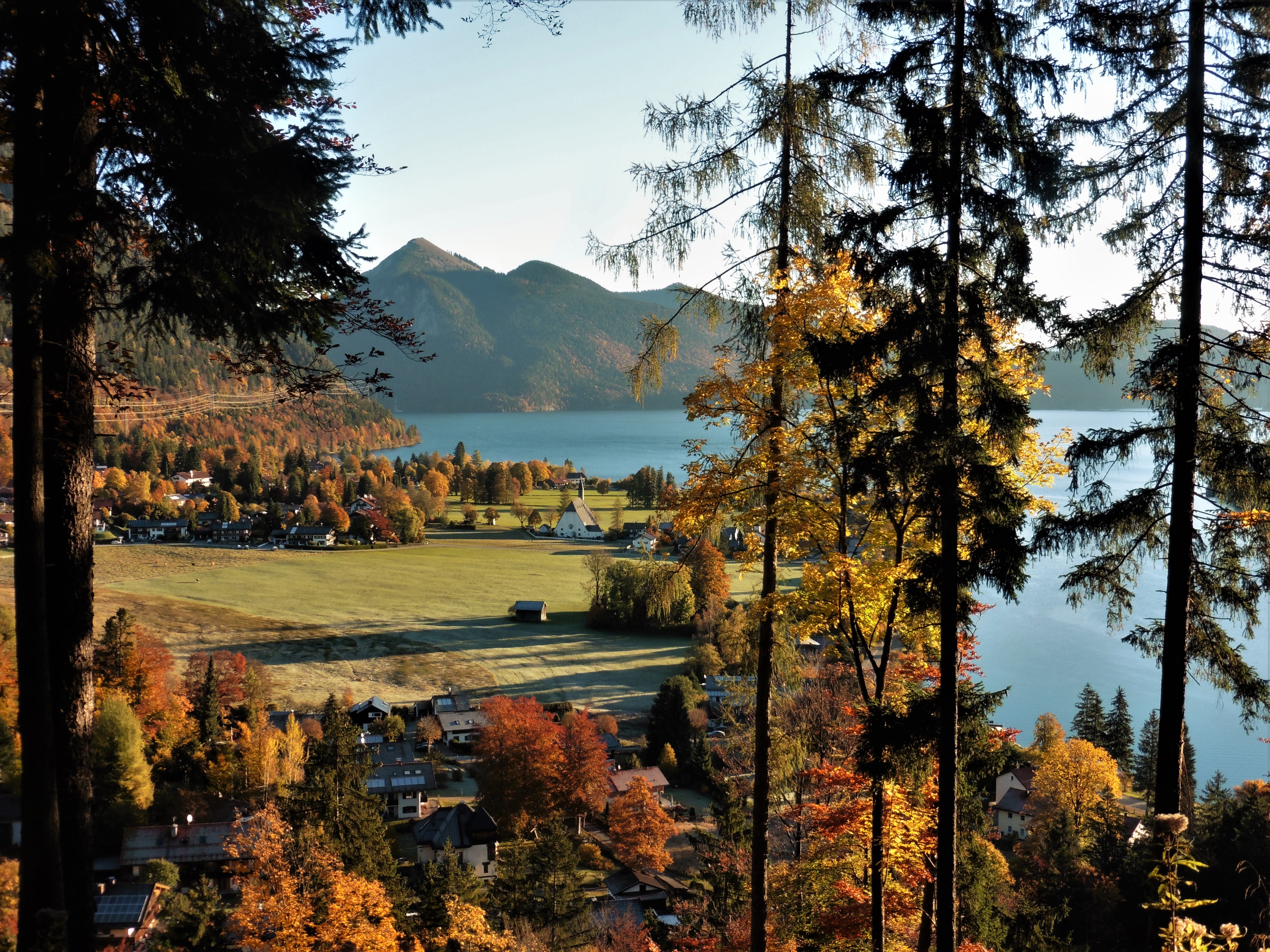 Bild 1: die Ortschaft Walchensee, kurz nach Sonnenaufgang;