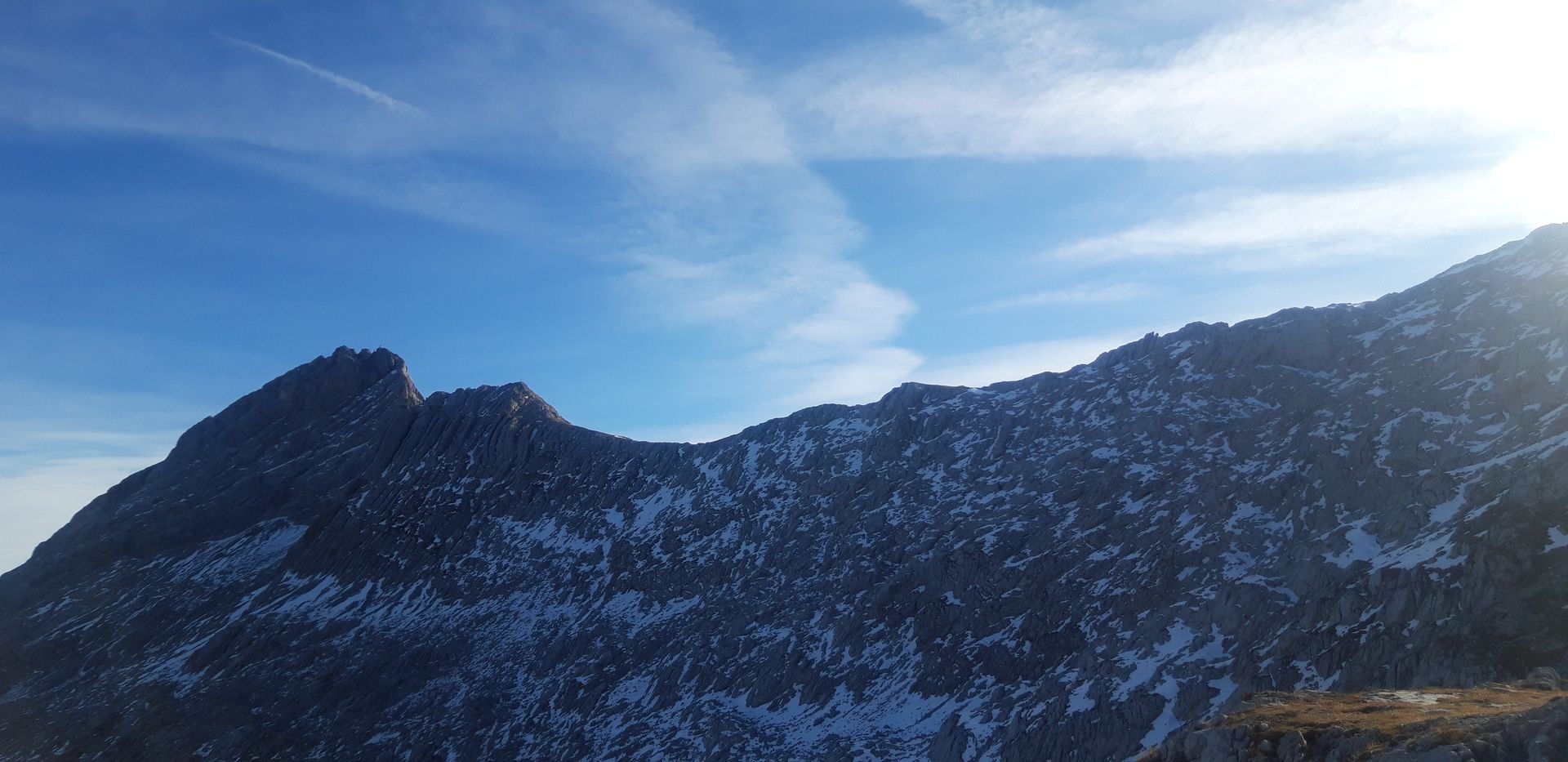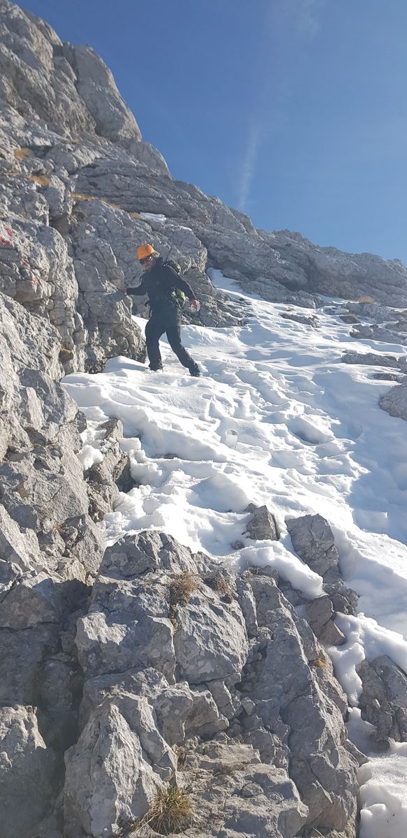 Der Großteil des Weges war heute aper, aber immer wieder kommen schattseitig längere Passagen mit meist gefrorenem Schnee, wo man schon ein bisserl Vorsicht walten lassen darf. Wir sind ohne Grödel hoch, was gut ging, haben sie bergab aber mit Gewinn genutzt, da es einfach viel schneller geht, wenn man nicht versuchen muss, umständlich am Schnee/Eis vorbei auf die Steine zu treten. Anforderungen maximal T4+.