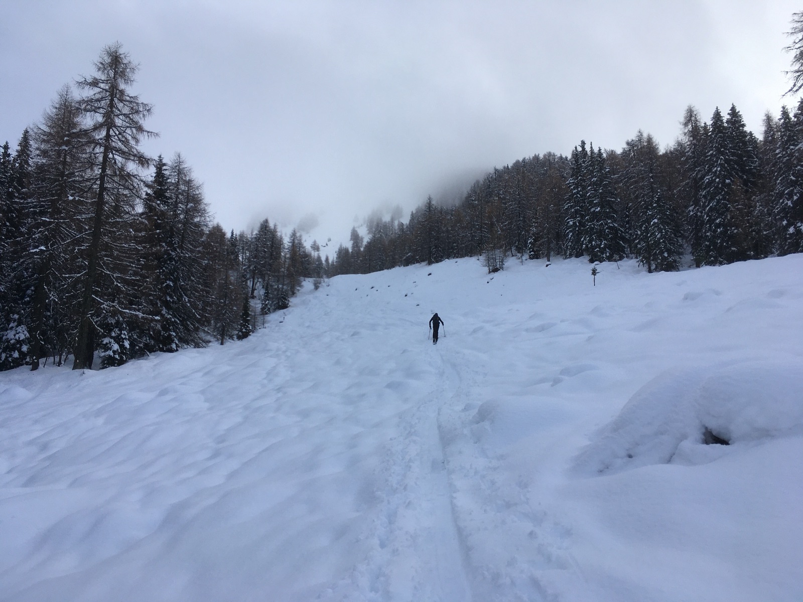In der Skischneise im unteren Bereich der Tour: