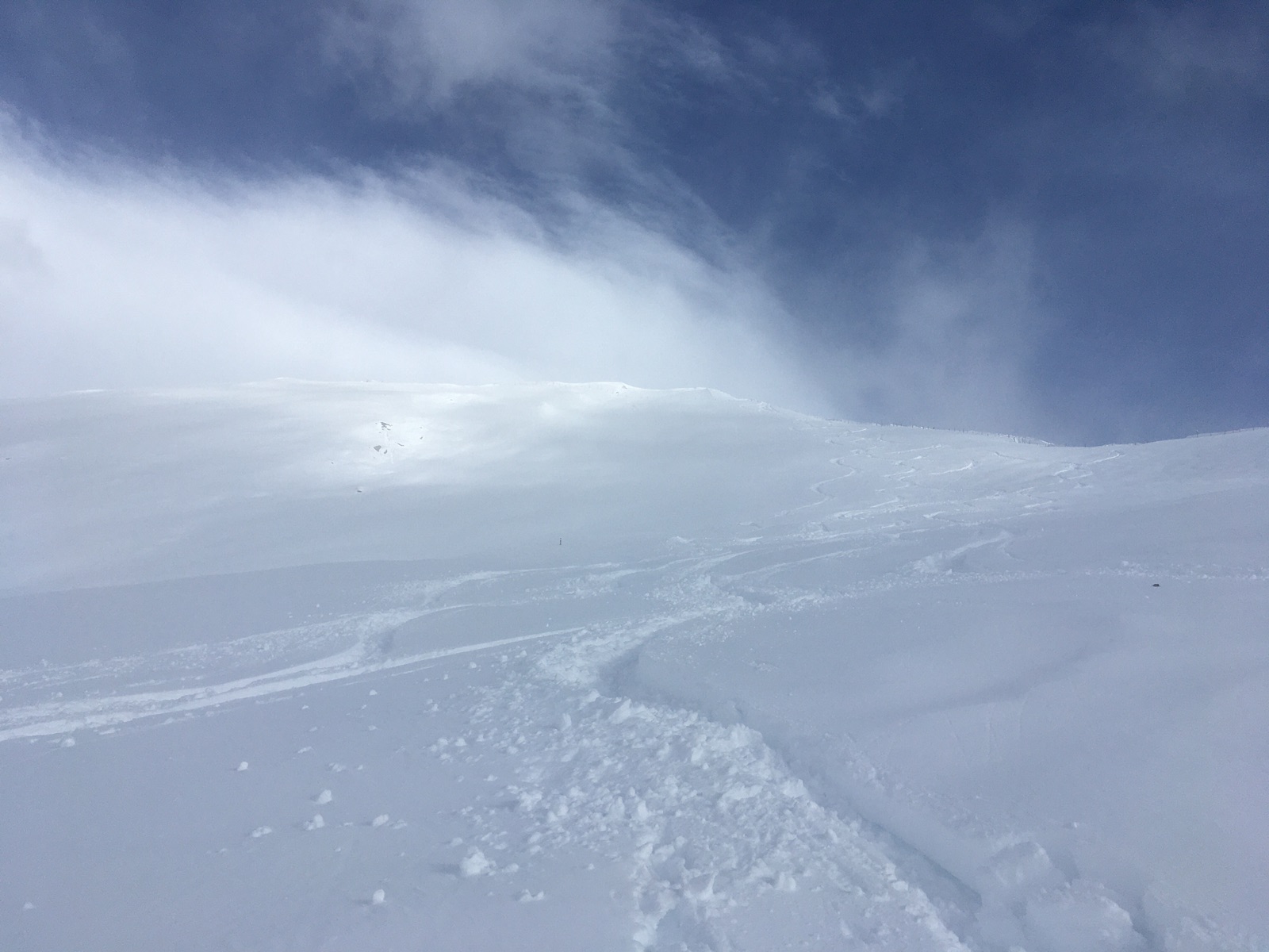 Gar nicht mal so schlechte Abfahrtsverhältnisse im Gipfelhang der Vennspitze: