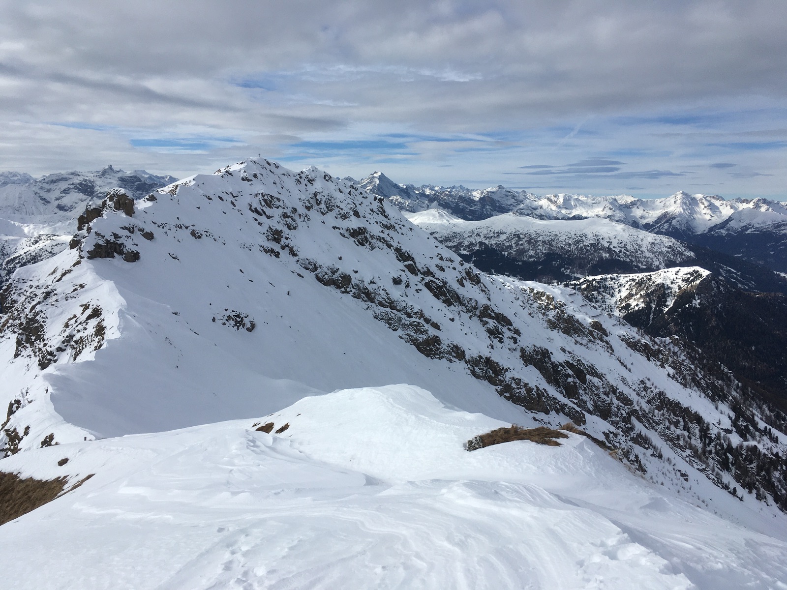 Gestern ging es zum Abschluss eine sonst wegen der rauen Bodenverhältnisse eher ab dem Hochwinter machbare Tour: Den Silleskogel. Der Forstweg hat unten bis zur Alm einige etwas schneearme Stellen, aber sehr gut machbar (nur mit der Erwärmung könnte es knapp werden). Ab dem Almgelände und auch im Bachgraben sowie bei der kurzen Steilstelle vor der Roßgrube gute Aufstiegsverhältnisse. Die letzten 20 Höhenmeter ab dem Skidepot sind sinnvoll nur zu Fuß zu machen, gestern ging es noch gut ohne Steigeisen. Der Gipfel ist kreuzlos, aber ein sehr guter Aussichtspunkt.