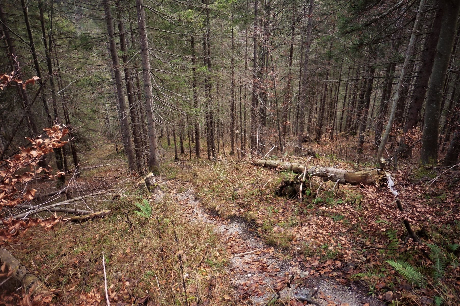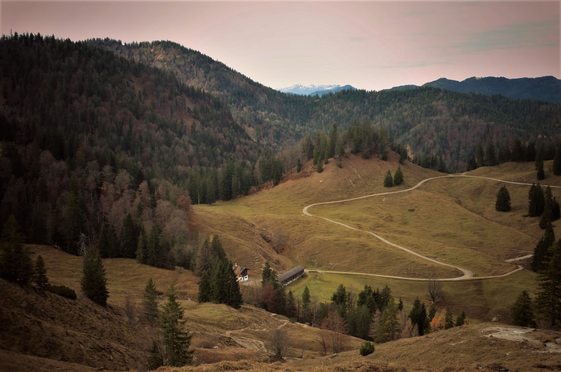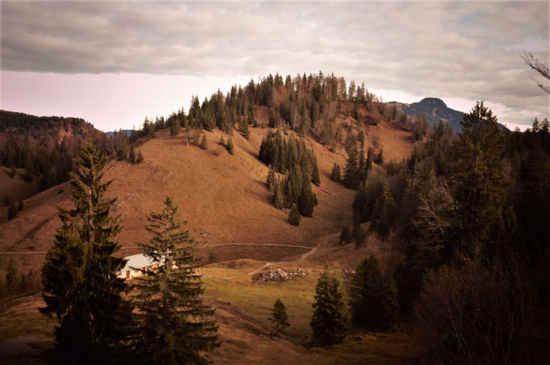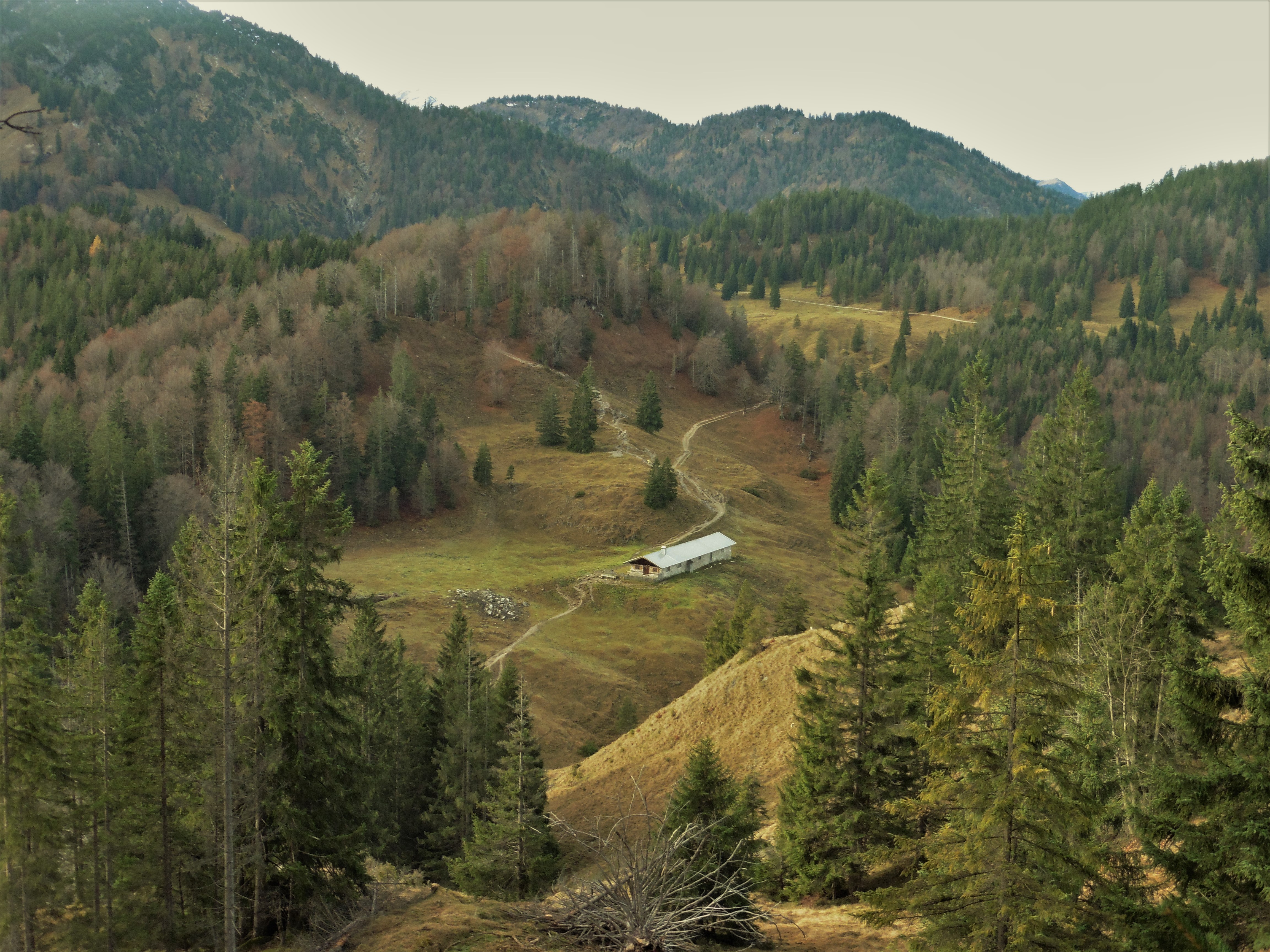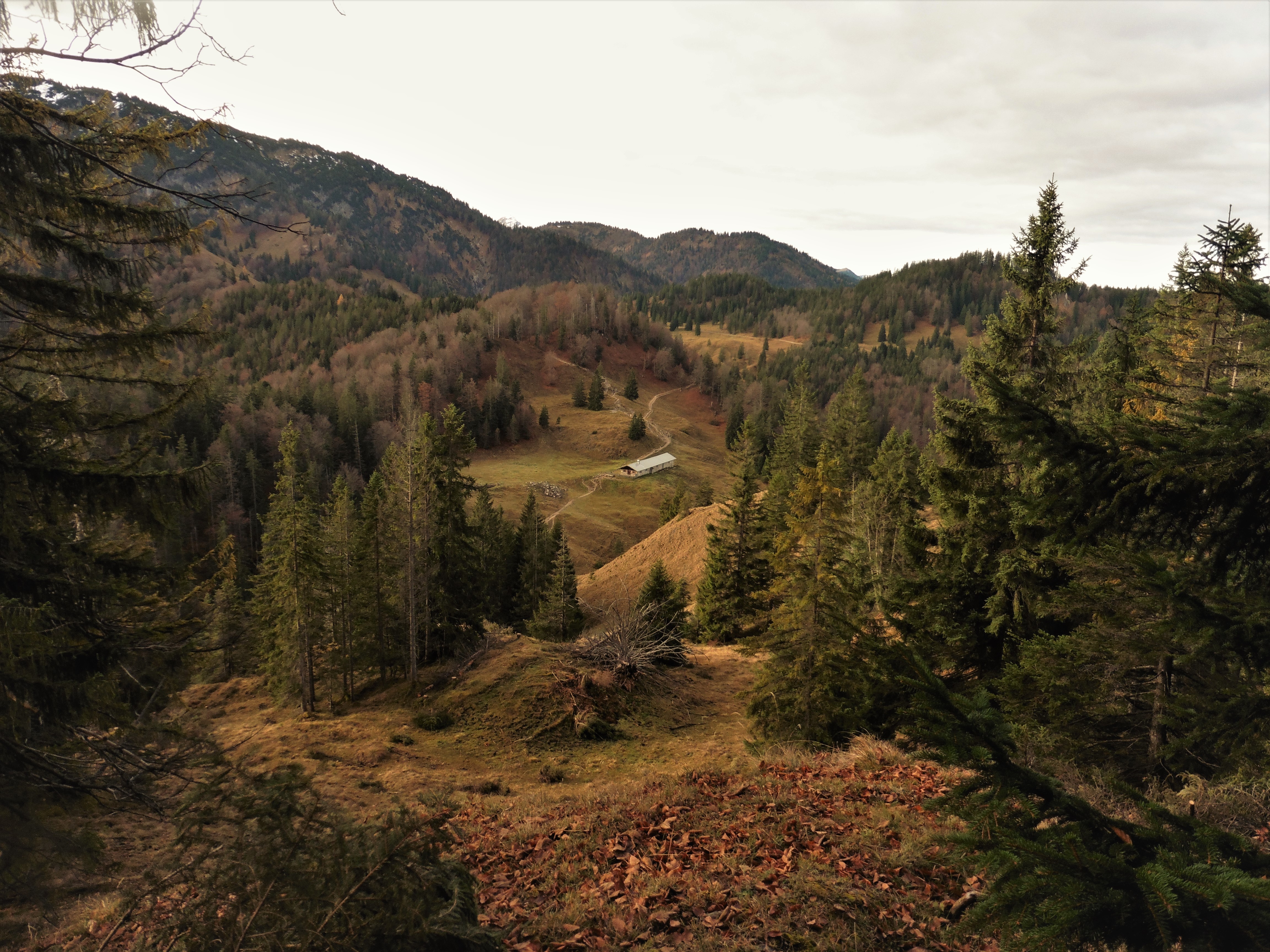 Bild 1: Blick beim Aufstieg zum Hohen Gernberg hinunter auf die Geißalm;