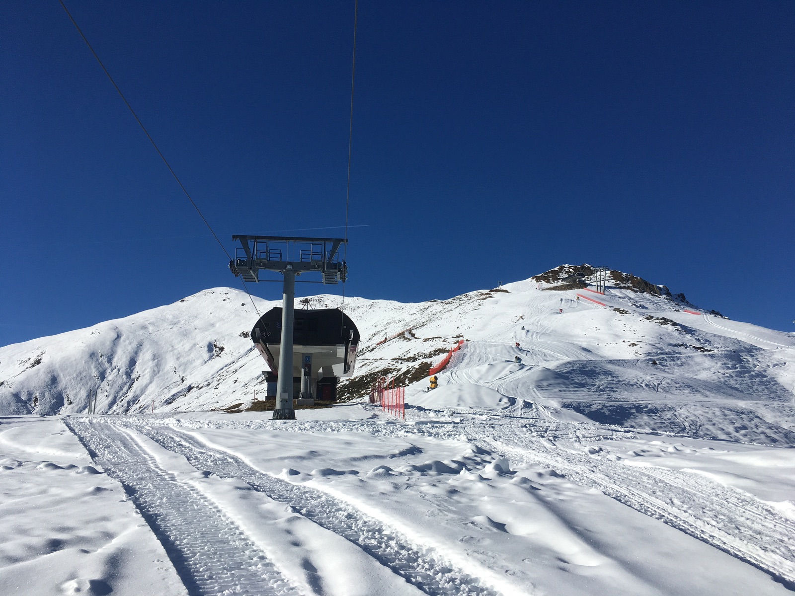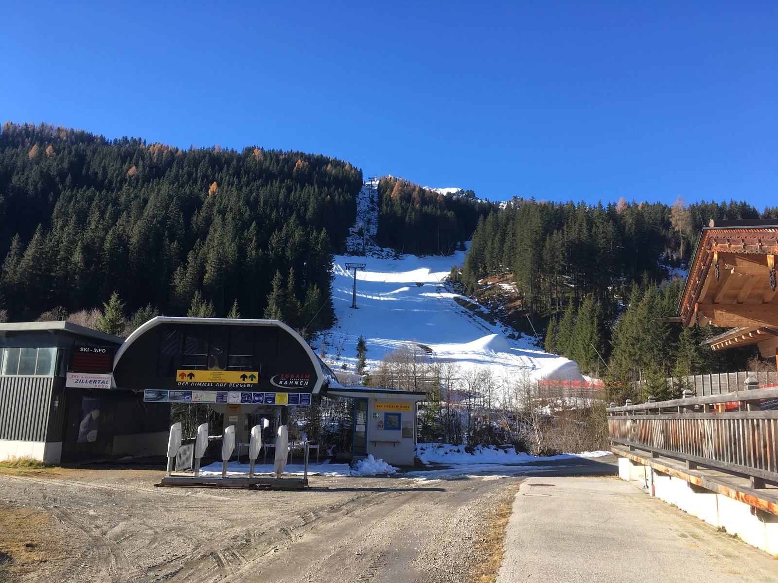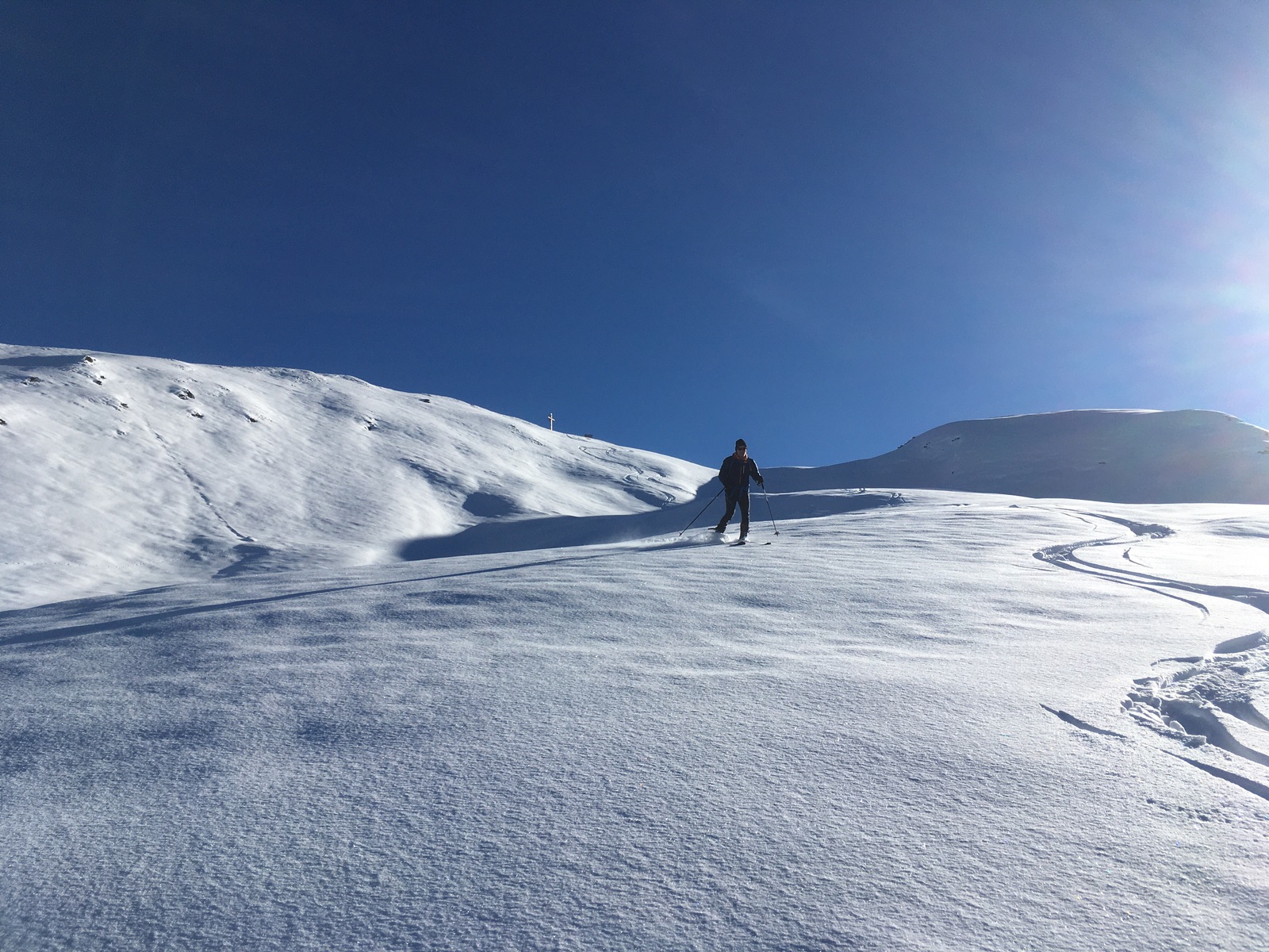 Bei der nordseitigen Abfahrt vom Gipfel erwischten wir gar noch Pulver. Im Skigebiet dann Schneekanonen-Bruchharsch in Wechsel mit hartem Schnee. Präpariert wurde noch nicht.