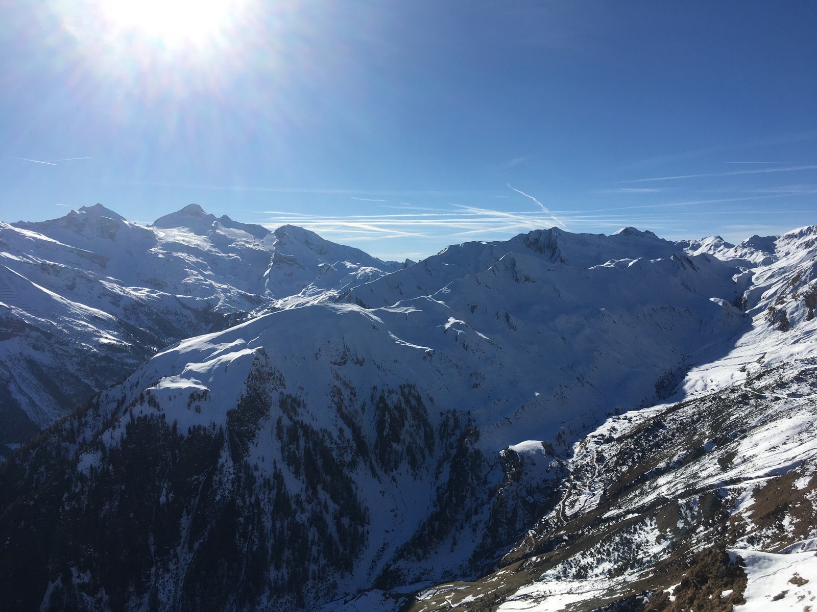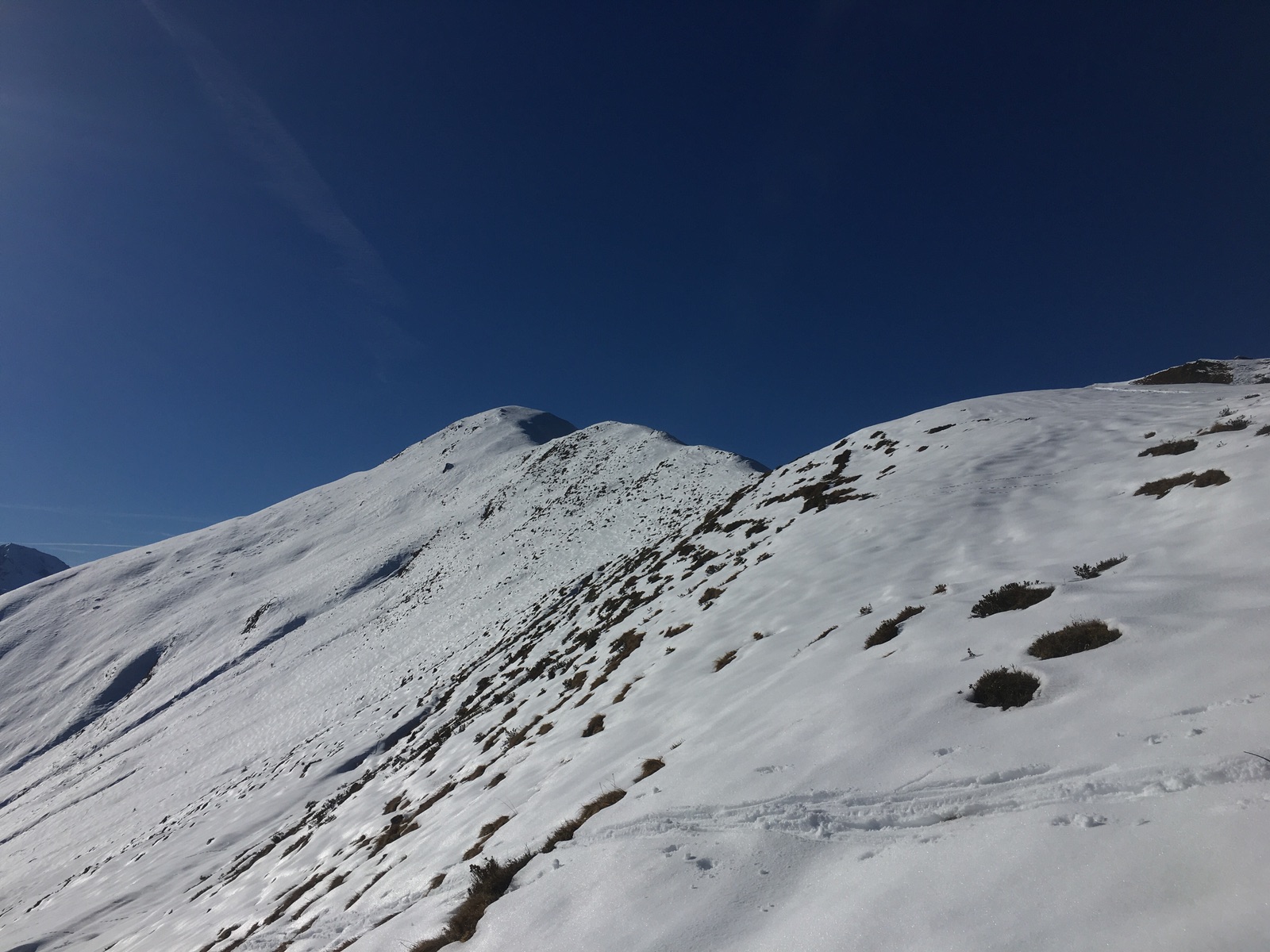 Eigentlich sollte es Richtung Hintertuxer Gletscher gehen, doch der Massenandrang bremste uns bereits bei der Anfahrt in Vorderlahnersbach aus (Straße gesperrt wegen voller Parkplätze) und der Spezl wollte dann nicht mehr mit dem Bus weiter, so gab es kurzfristig eine Alternative: Von der Straße zu den Geiselhöfen nordseitig durch das Eggalm-Skigebiet zur Bergstation und dann weiter am Kamm zur Grüblspitze. Hier trafen wir den ganzen Tag über bei bestem Wetter den ganzen Tag gerade mal zwei Wanderer und die Sicht ist auch toll. Extrem warm, heute gegen Mittag im Schatten (!) 14 Grad. Kein Wunder, dass derzeit die Schneedecke rasant abschmilzt und es südseitig fast bis in die Gipfellagen aper ist.