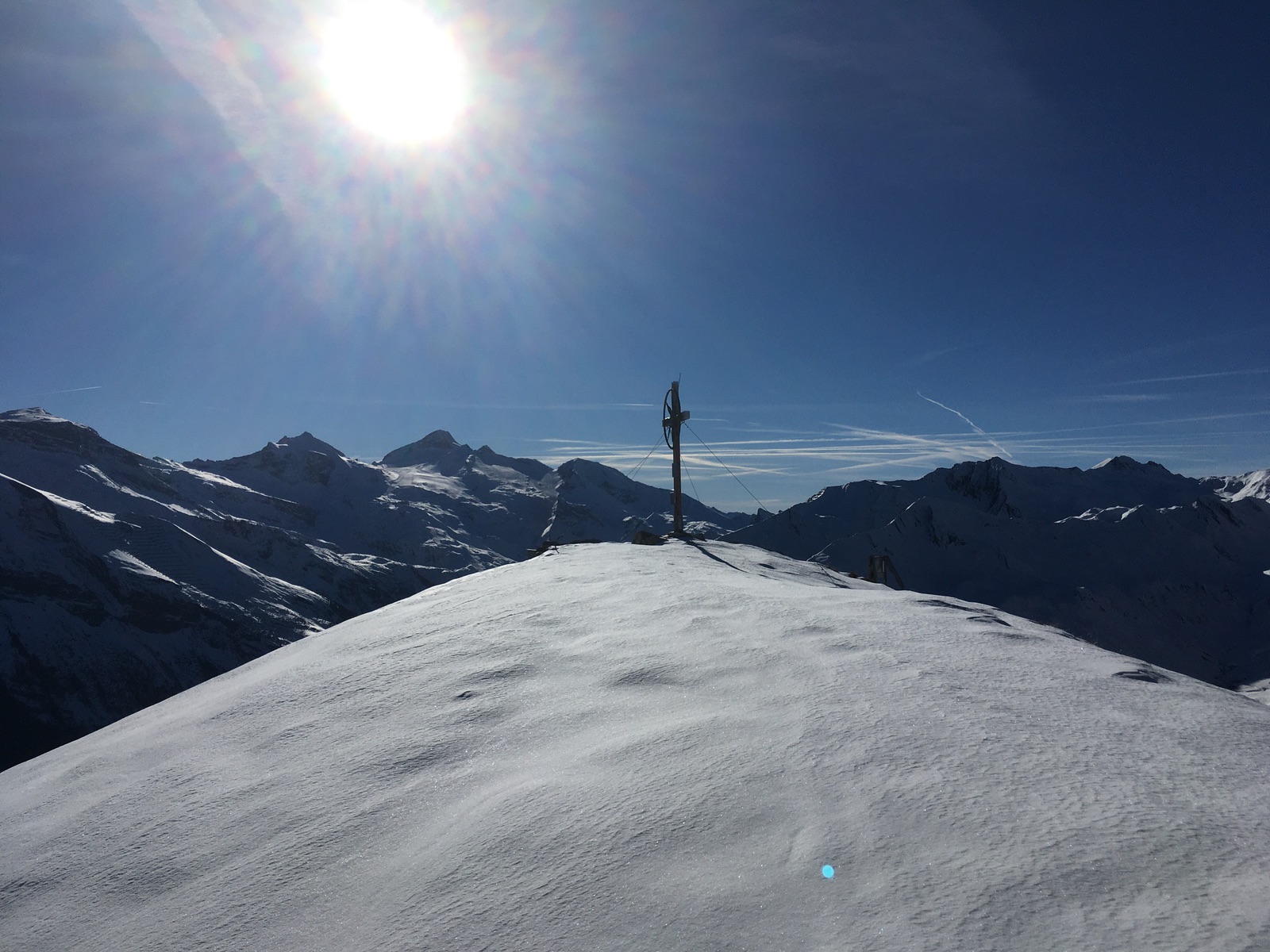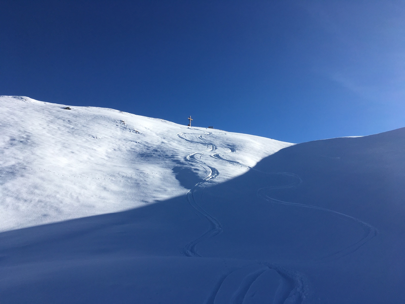 Pulverabfahrt direkt vom Gipfelkreuz: