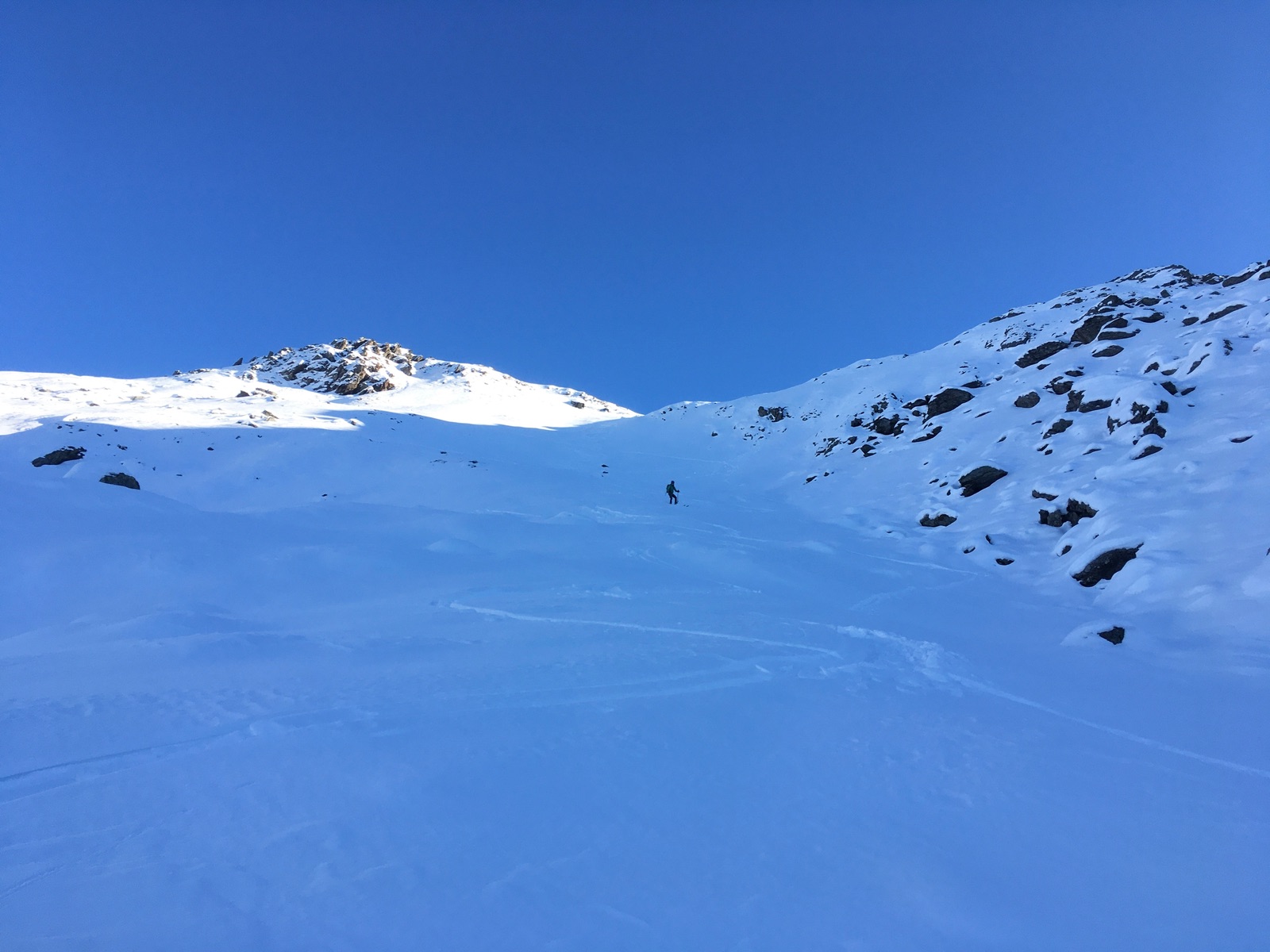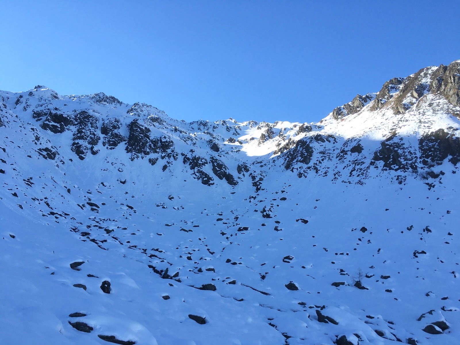 Am Ende des flacheren Stücks - mittig die Steilrinne: