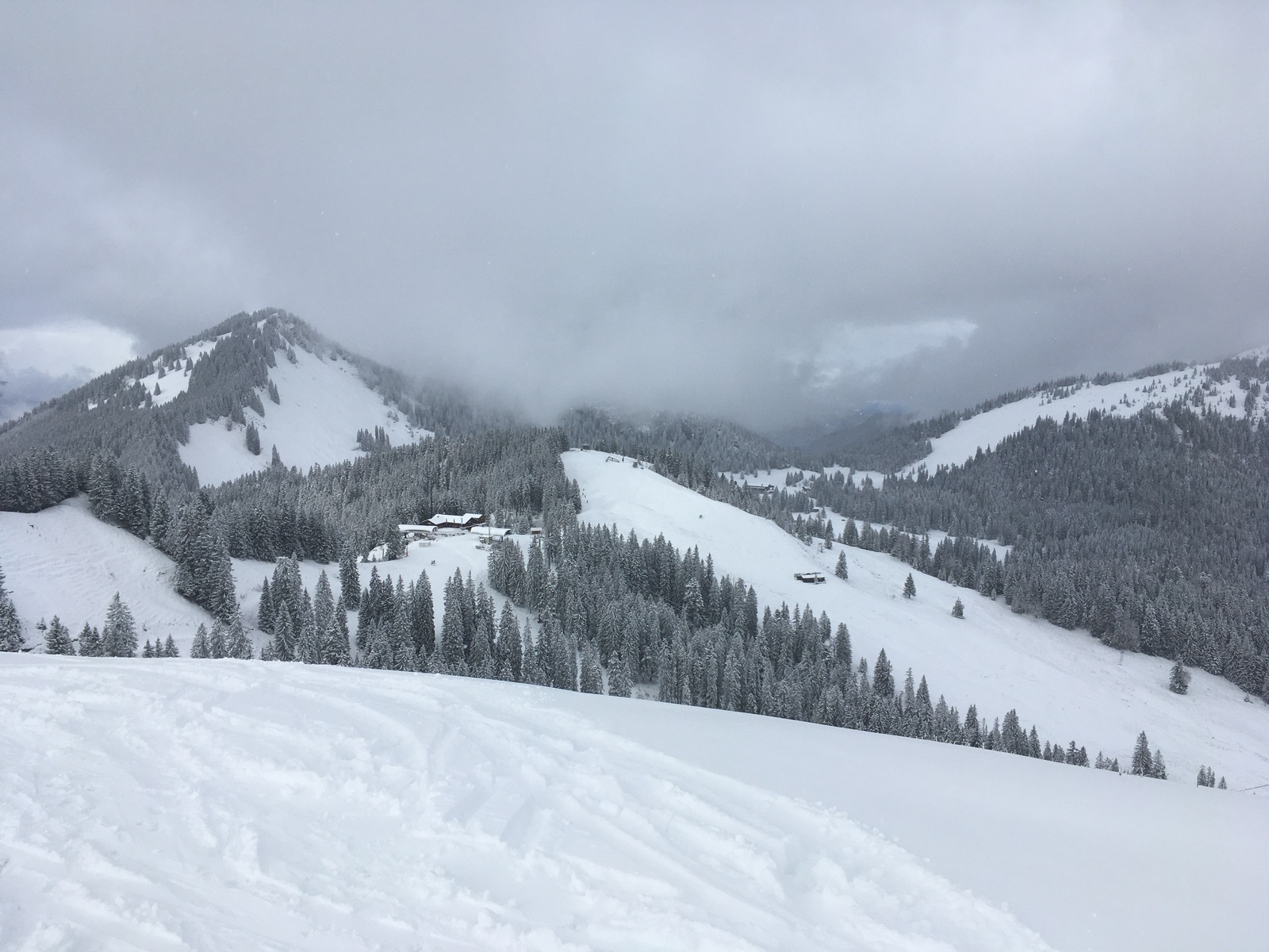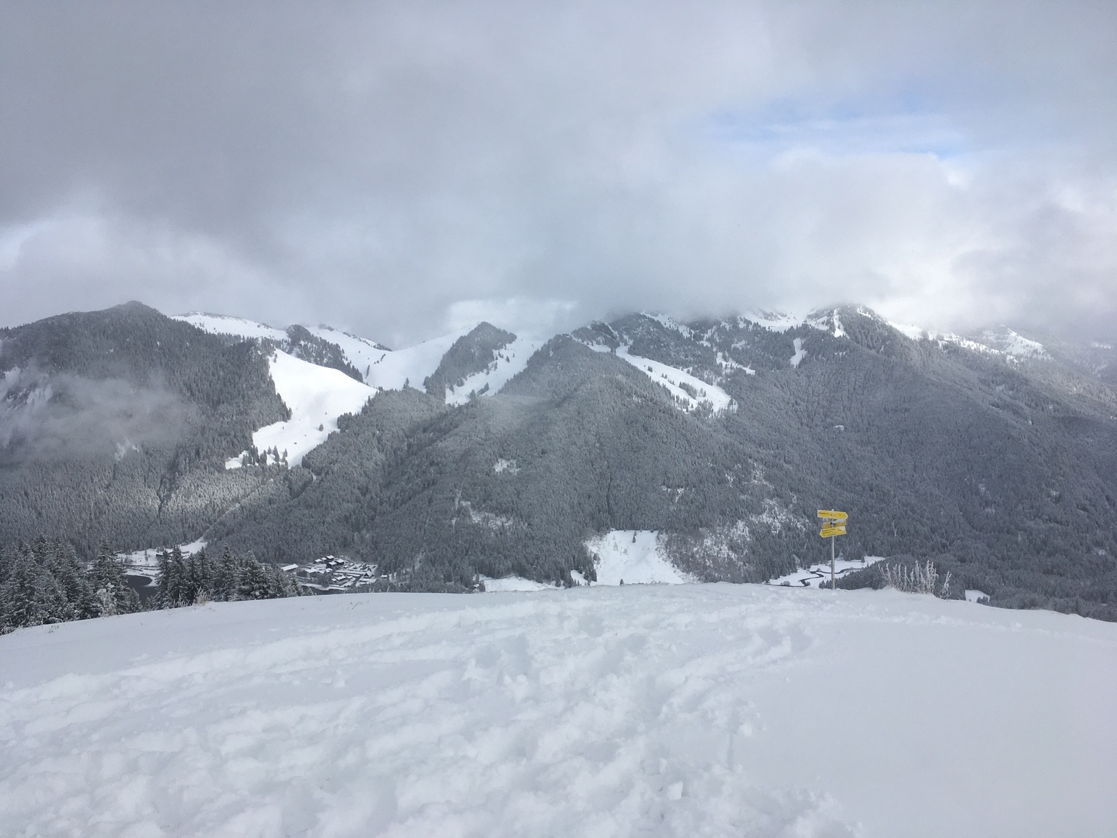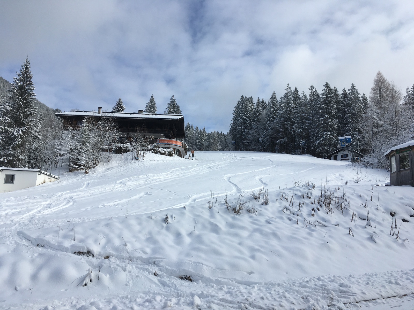 In der Hoffnung auf ausreichend Neuschnee und nicht allzugange Anfahrt ging es heute in die Sutten (Mautstraße 3 Euro, heute ohne Schneeketten machbar). Gegen Mittag waren sogar Auflockerungen dabei.