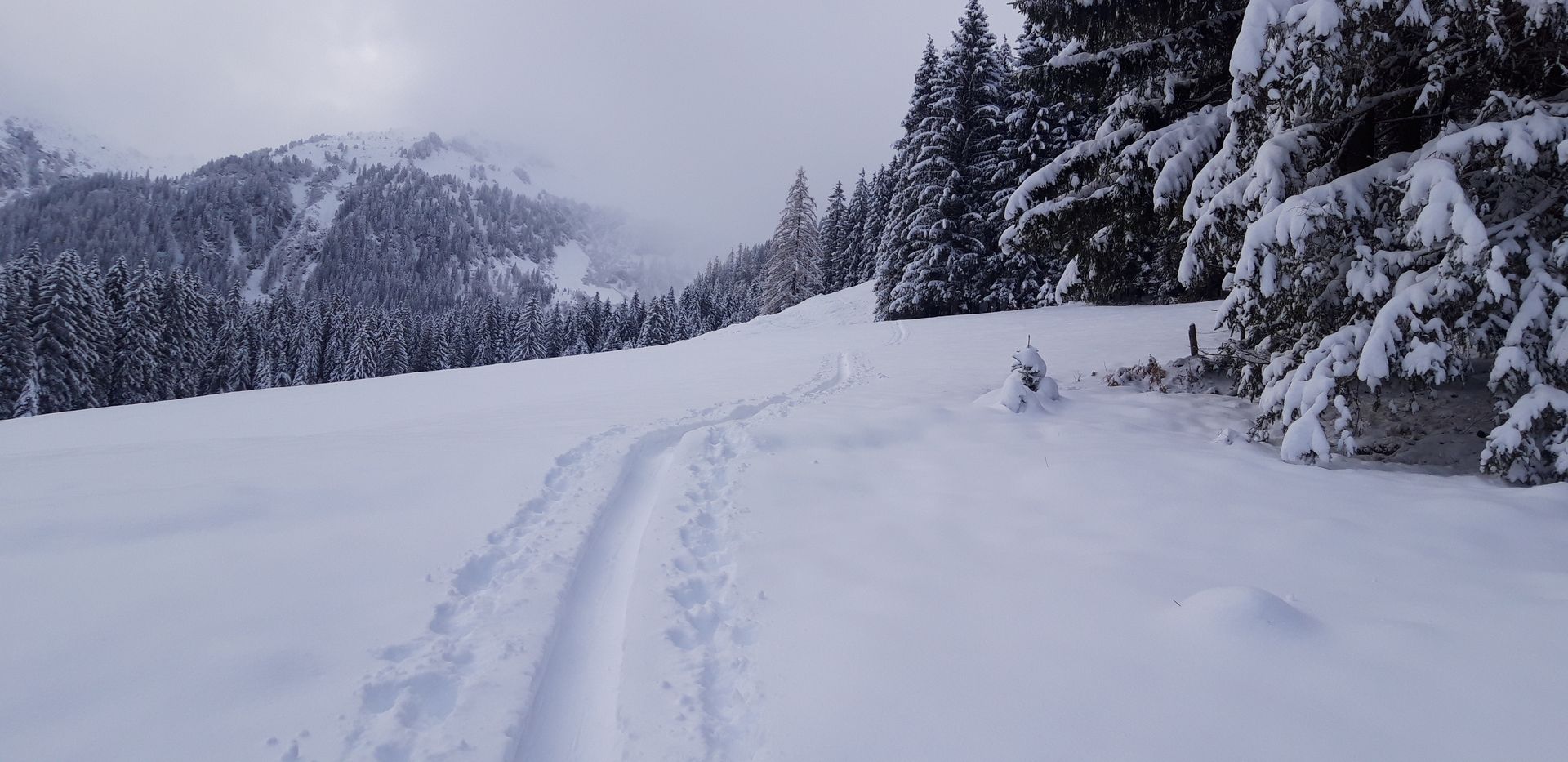 Auf dem letzten Bild sieht man gut, dass es im freien Gelände noch nicht genug Schnee hat.