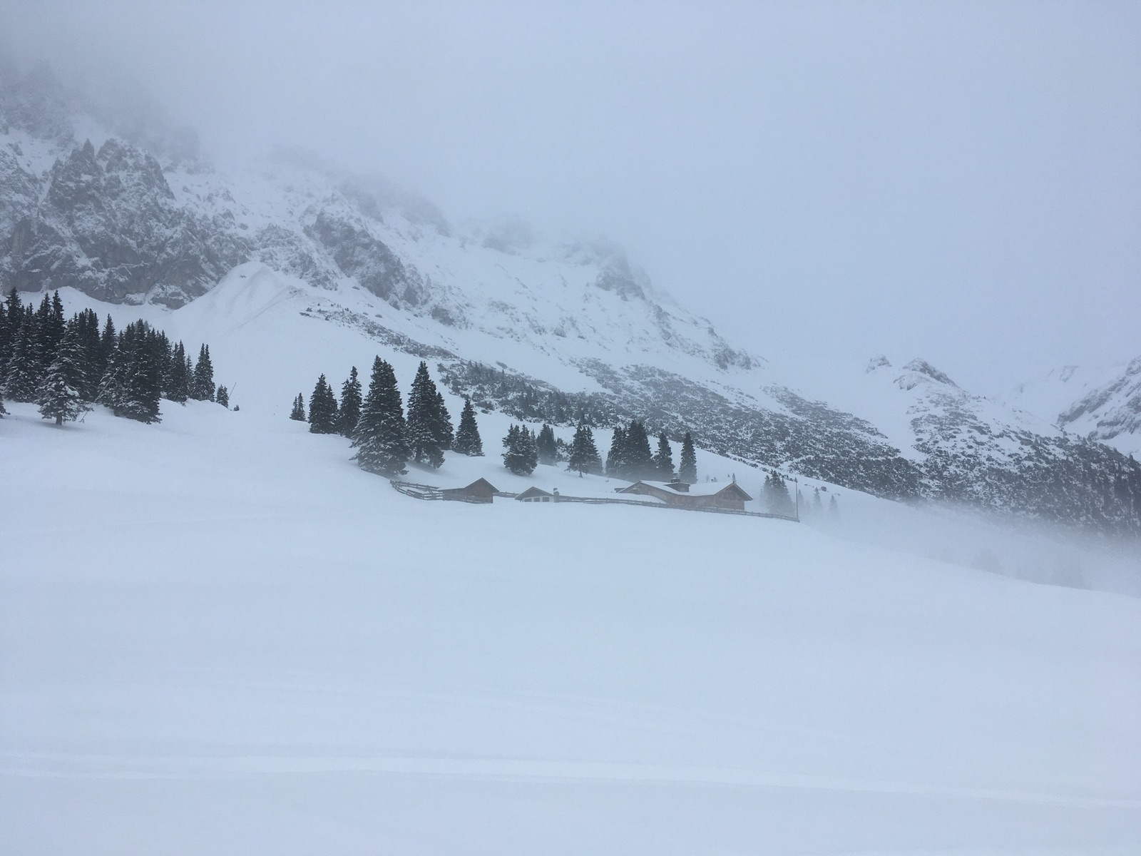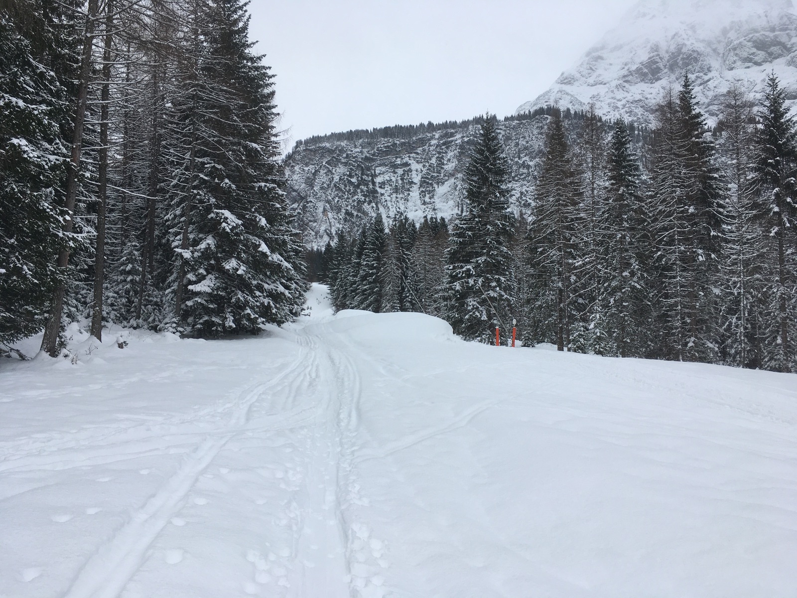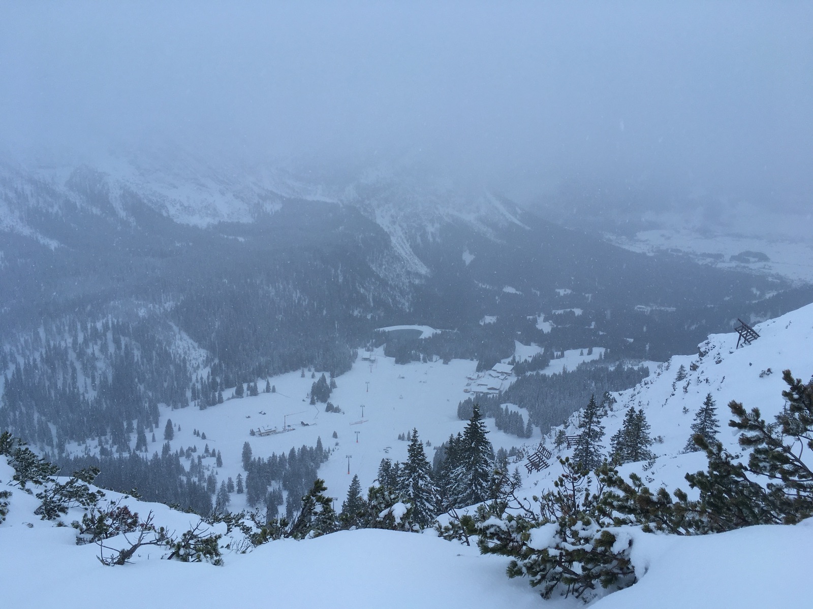 Heute habe ich mich bei ziemlich bescheidenem Wetter aufraffen können, die Bahn nach Ehrwald zu nehmen. Die im Forum berichteten Pulverträume sind durch den Regen (heute in der Gegend bis mindestens 1.600 m hinauf) aber Vergangenheit.