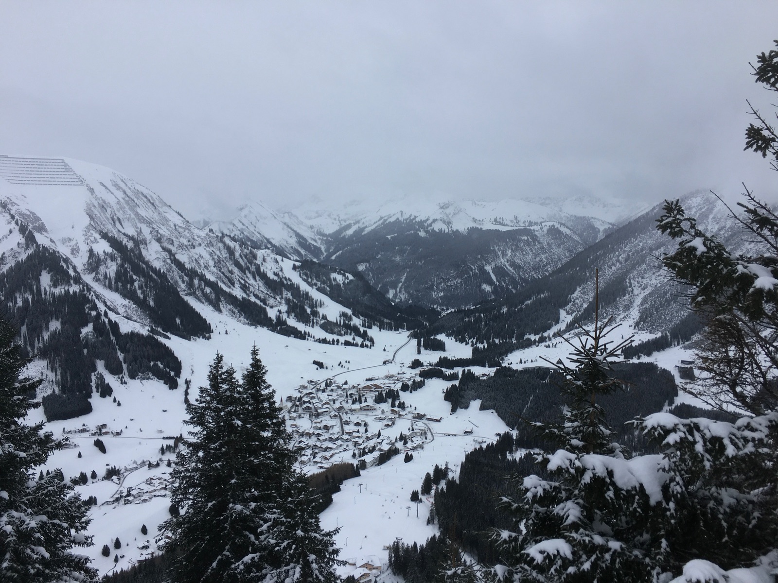 Der Tiefblick vom Alpkopf auf Berwang: