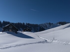Heute am Seekarkreuz. Aufgrund des frühen Aufbruchs hatte ich auch kein Problem einen Parkplatz zu bekommen. Schnee dann ab/bis zum Auto.